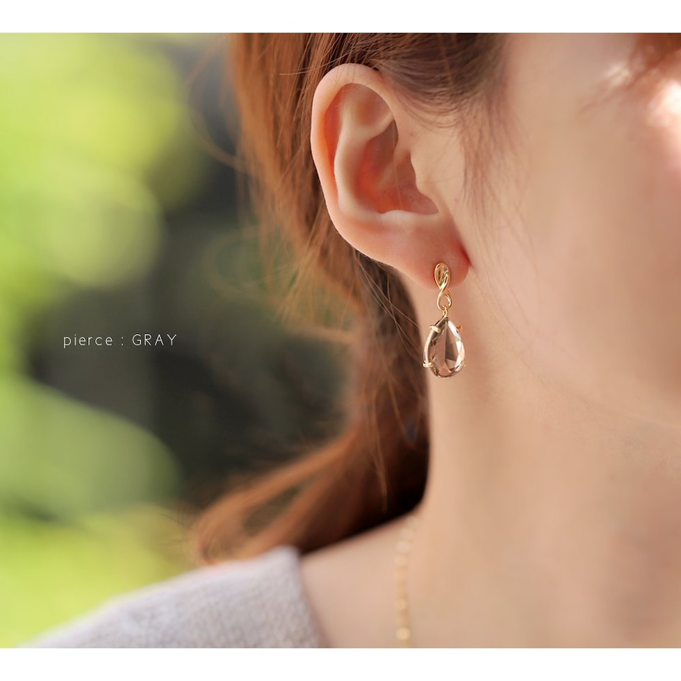 ピアス イヤリング レディース ネジ式 クリスタルガラス 多面カット ドロップ cream dot ゆうパケット [グレー_ピアス]