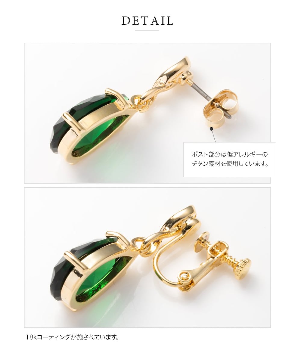 ドロップ型の大粒クリスタルガラスが耳元で煌めくピアス/イヤリング。ひねりを加えたメタルとのコンビで大人っぽく高見えします。お顔周りに品の良い華やかさをプラスしてくれるアイテムです。