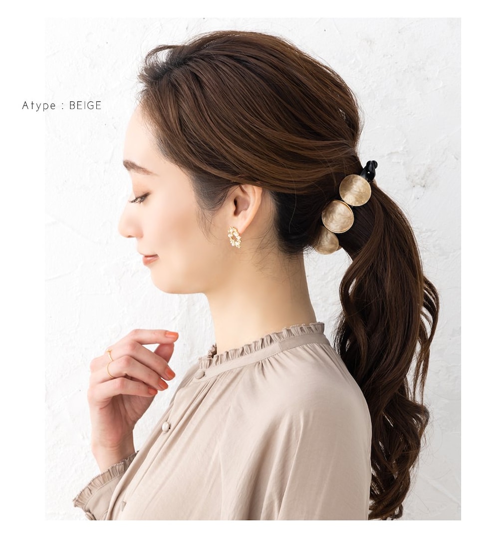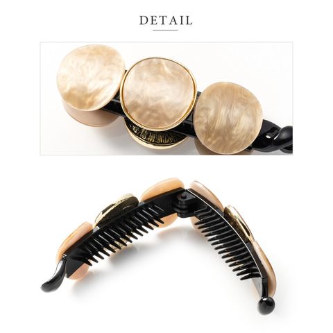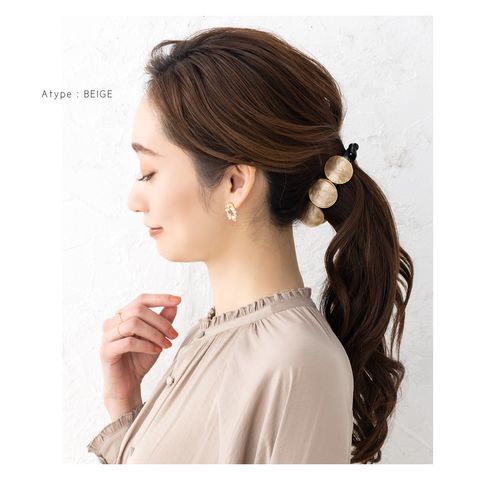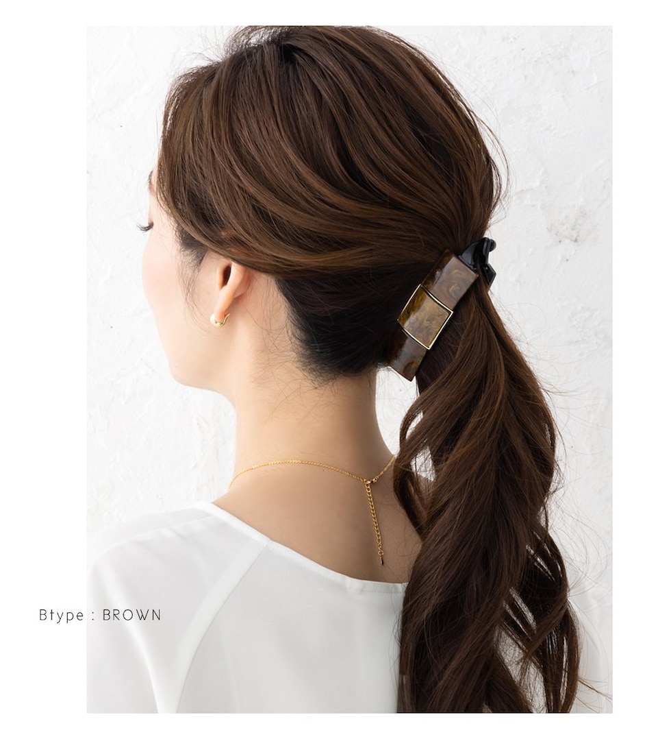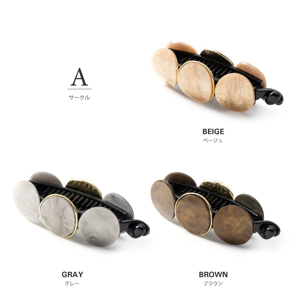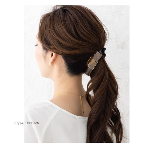 3連マーブル×艶めくゴールドフレームの組み合わせが後ろ姿にこなれた印象をプラス。シンプルなポニーやお団子ヘアにつけるだけでグンとおしゃれ度が増す優秀アイテムです!