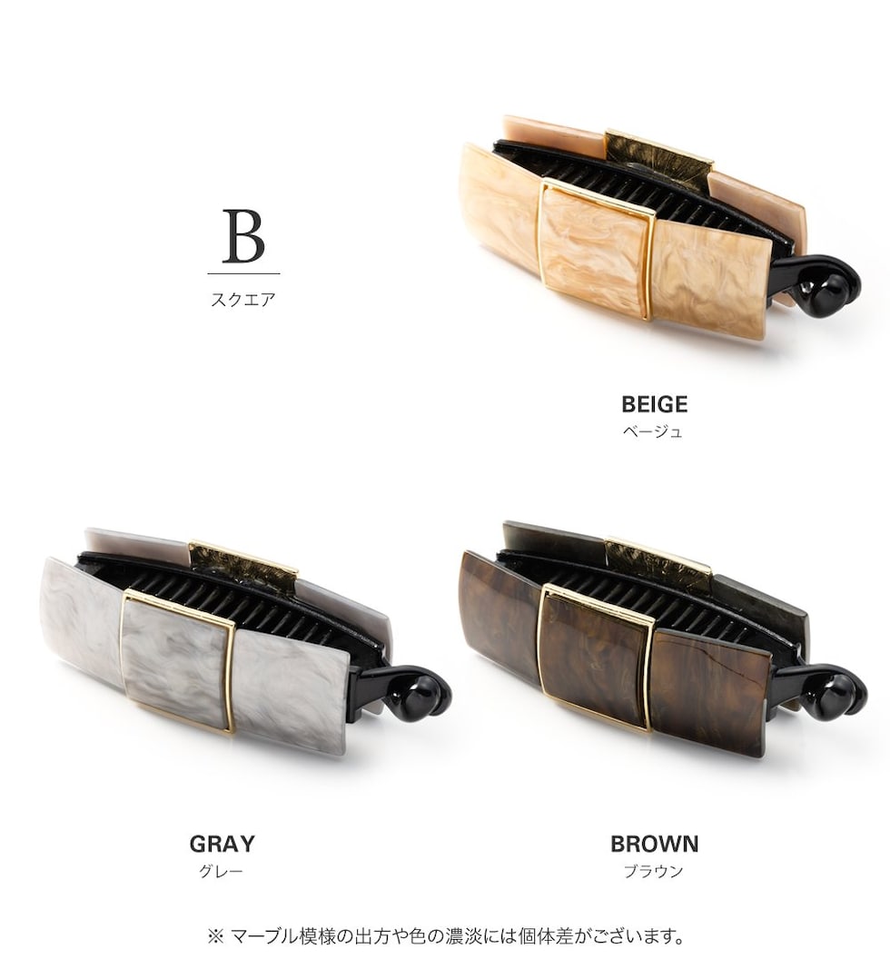 ヘアアクセサリー レディース バナナクリップ 大きめ しっかり留まる ヘアクリップ 髪留め まとめ髪 スクエア マーブル ビッグ 艶 ブラウン cream dot ゆうパケット [A:グレー_ワンサイズ]