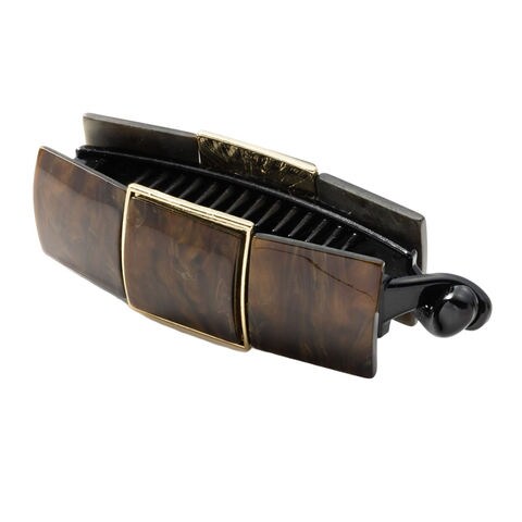 ヘアアクセサリー レディース バナナクリップ 大きめ しっかり留まる ヘアクリップ 髪留め まとめ髪 スクエア マーブル ビッグ 艶 ブラウン cream dot ゆうパケット [B:ブラウン_ワンサイズ]