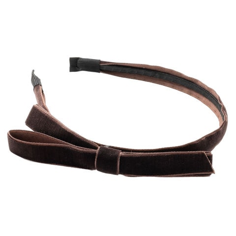 ヘアアクセサリー レディース カチューシャ ミディアム幅 ベロア風 ベロアカチューシャ ヘアバンド 無地 リボン アシンメトリー cream dot ゆうパケット [ブラウン_ワンサイズ]