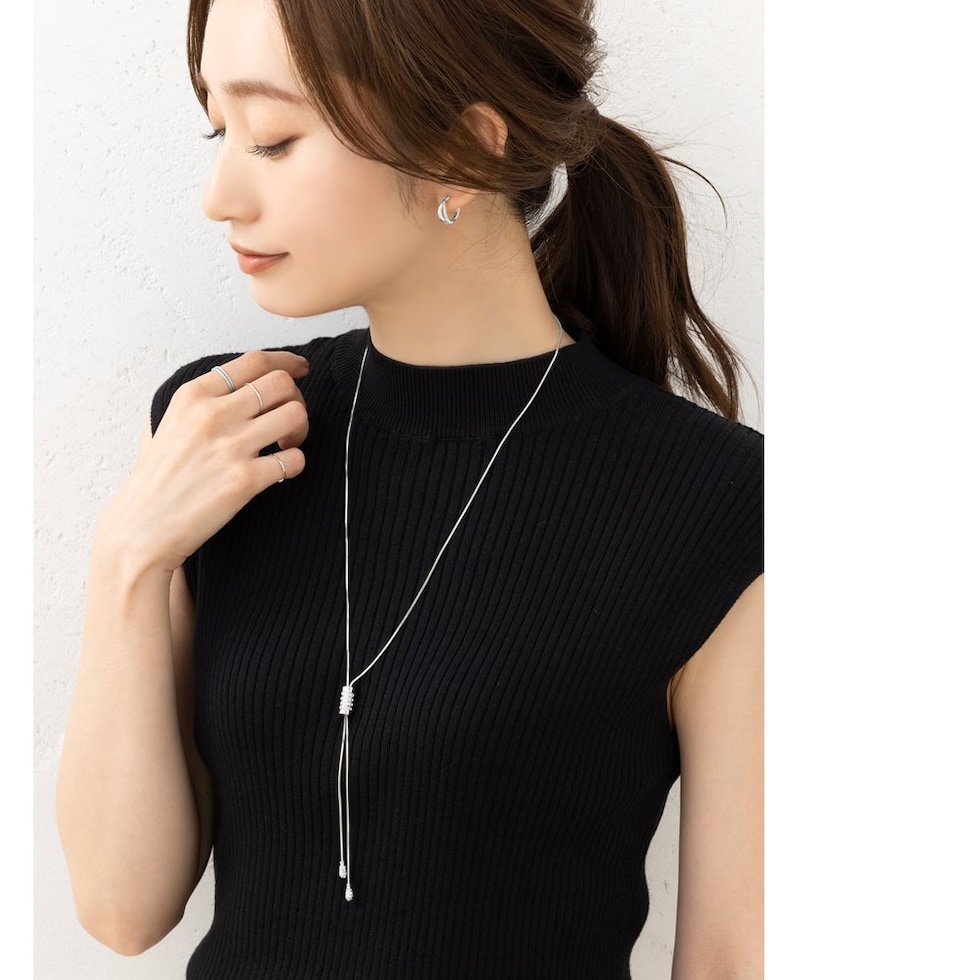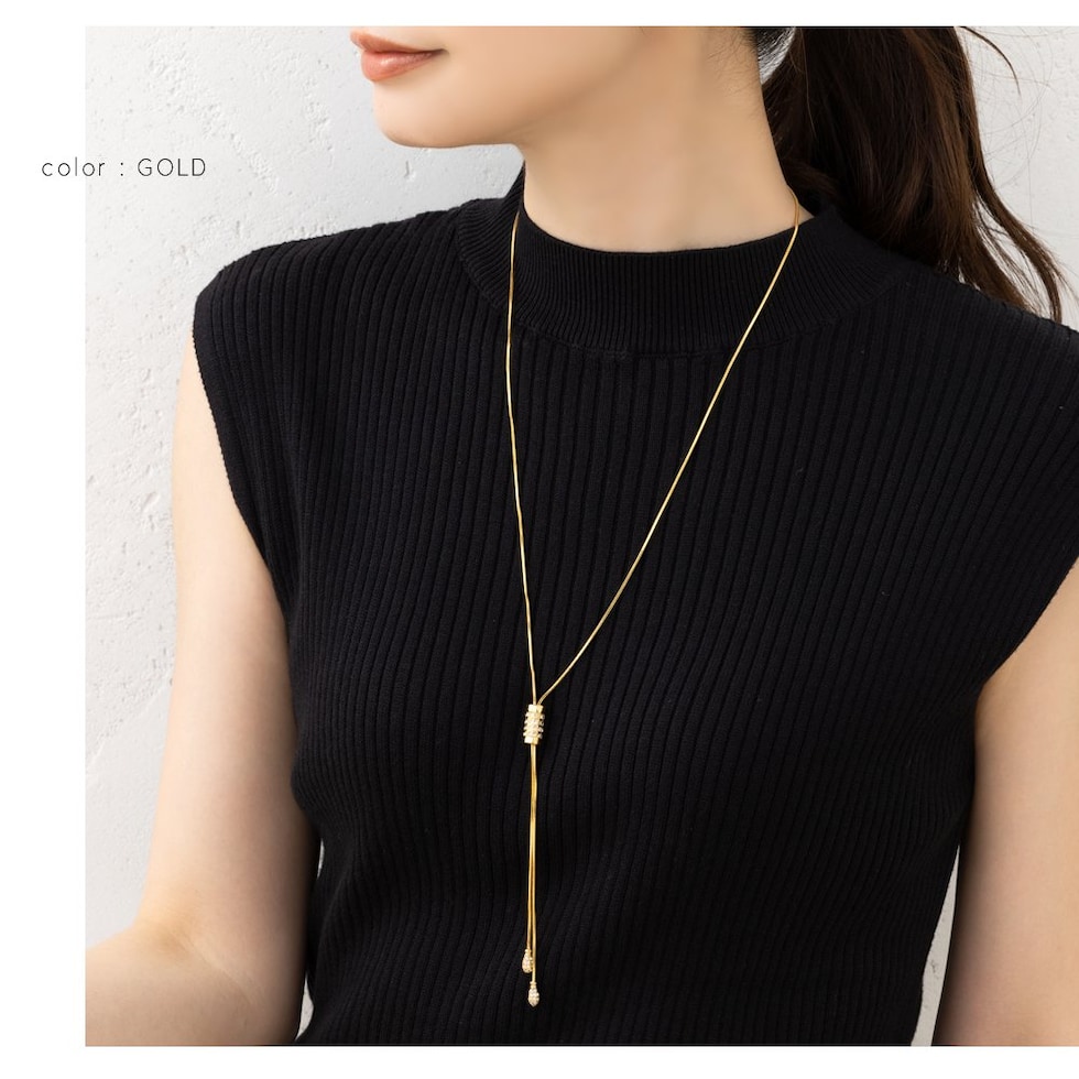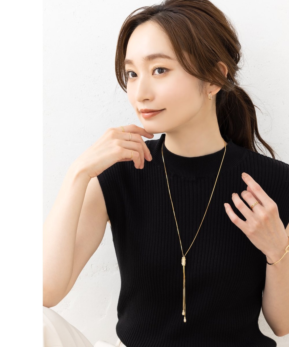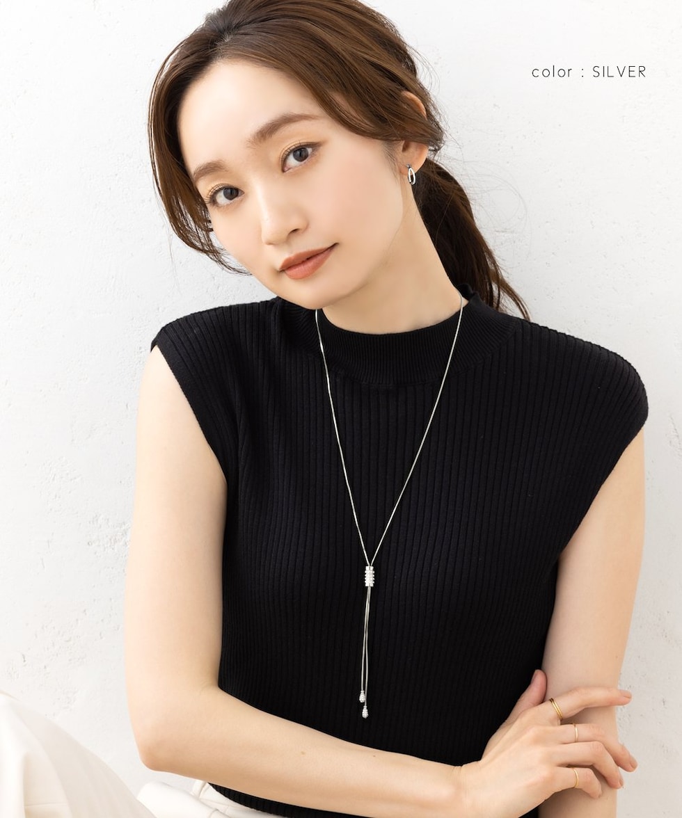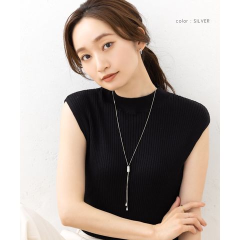 スライドパーツでお好みのバランスにアレンジできるラリエットロングネックレス。小粒ビジューを贅沢に配したパヴェドロップが胸元で揺れるデザイン。スネークチェーンのしなやかなY字でエレガントな印象に仕上がります。