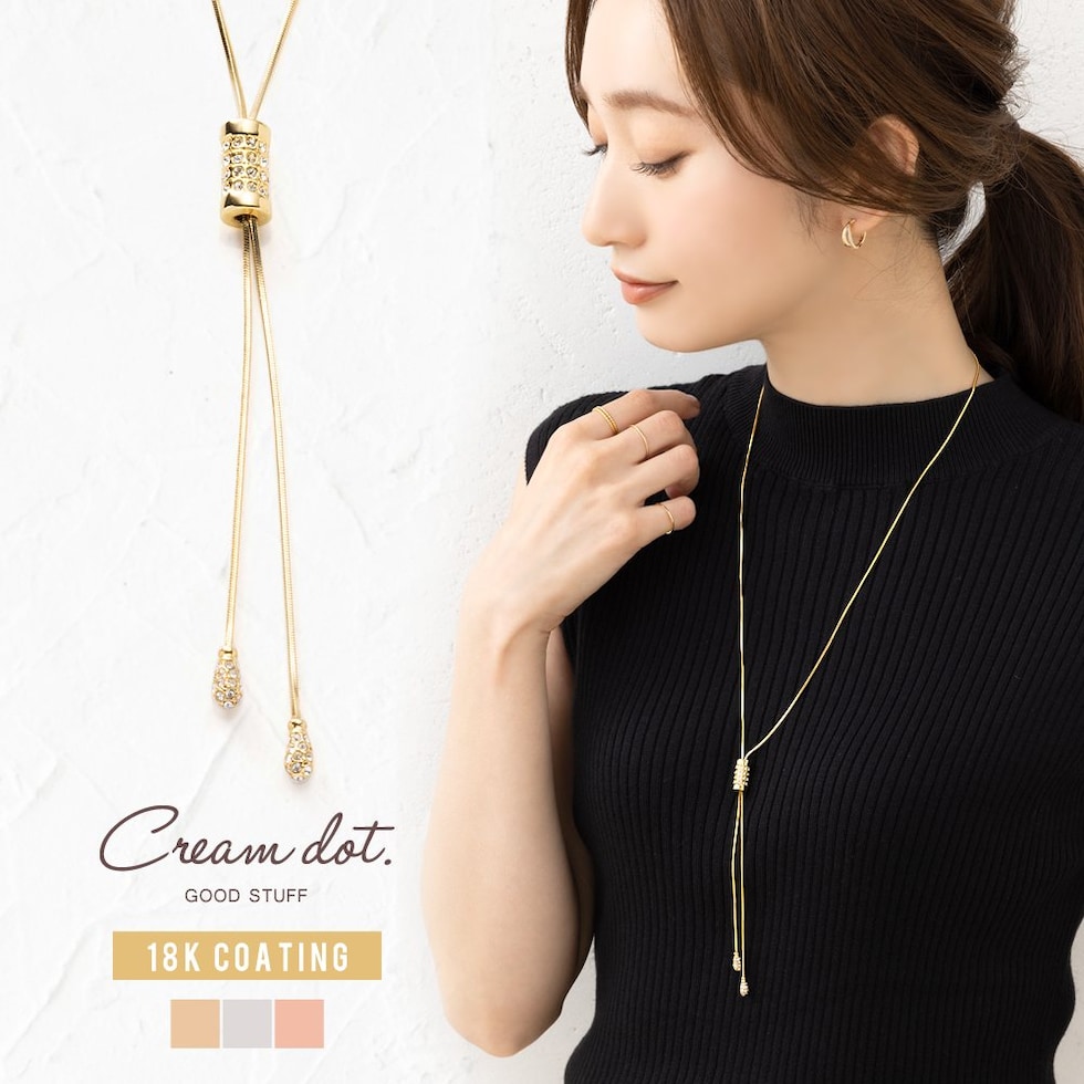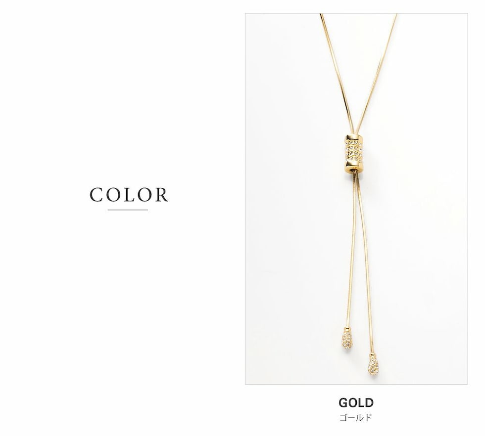 ネックレス レディース ロング ラリエット スネークチェーン キュービックジルコニア ビジュー パヴェ ドロップ y字 長さ調整 cream dot ゆうパケット [ゴールド_ワンサイズ]