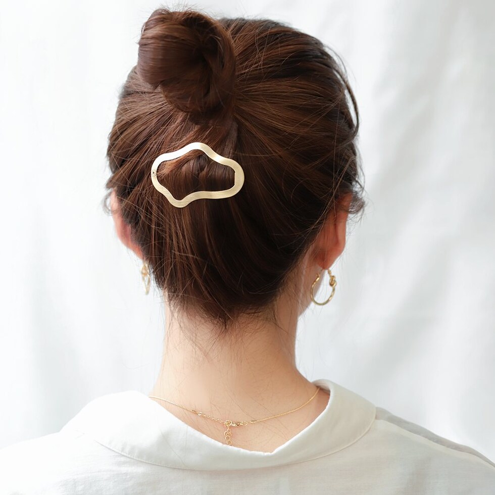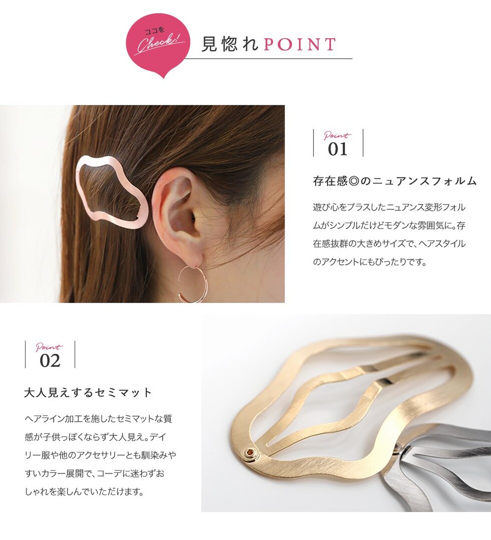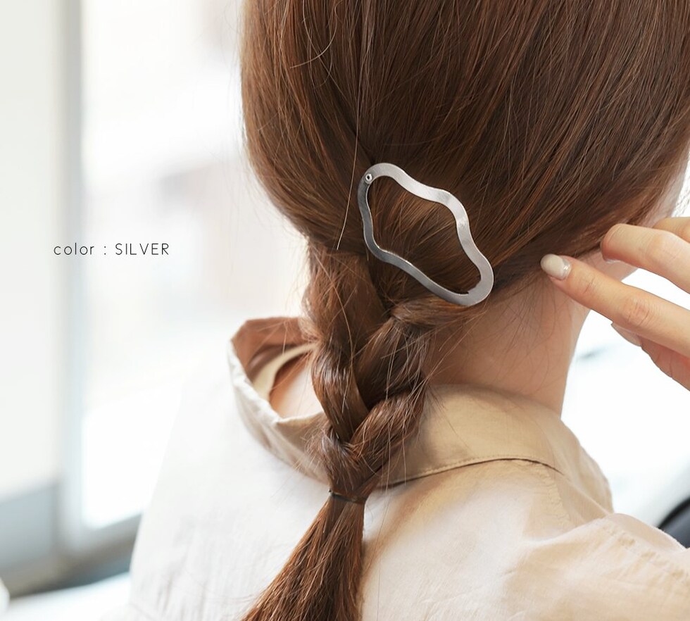 遊び心をプラスしたニュアンス変形フォルムがシンプルだけどモダンな雰囲気に。存在感抜群の大きめサイズで、ヘアスタイルのアクセントにもぴったりです。
