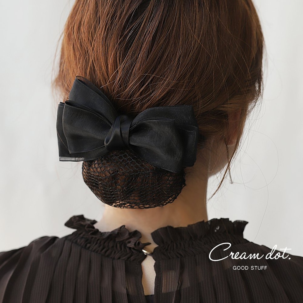 ヘアアクセサリー レディース シニヨンネット バレッタ リボン お団子 シニヨン まとめ髪 髪留め お団子ネット お団子カバー ネット付きバレッタ 簡単 サテン調 オーガンジー ポニーテール ヘアアレンジ cream dot ゆうパケット [ブラック_ワンサイズ]