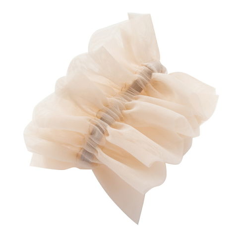 ヘアアクセサリー レディース シュシュ 軽い ボリューム 髪留め まとめ髪 オーガンジー ギャザー 透け感 無地 ドット フリル cream dot ゆうパケット [A:ベージュ_ワンサイズ]