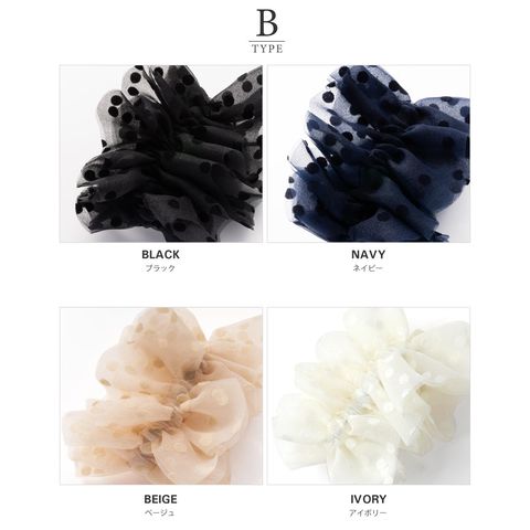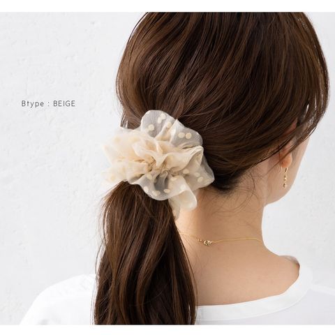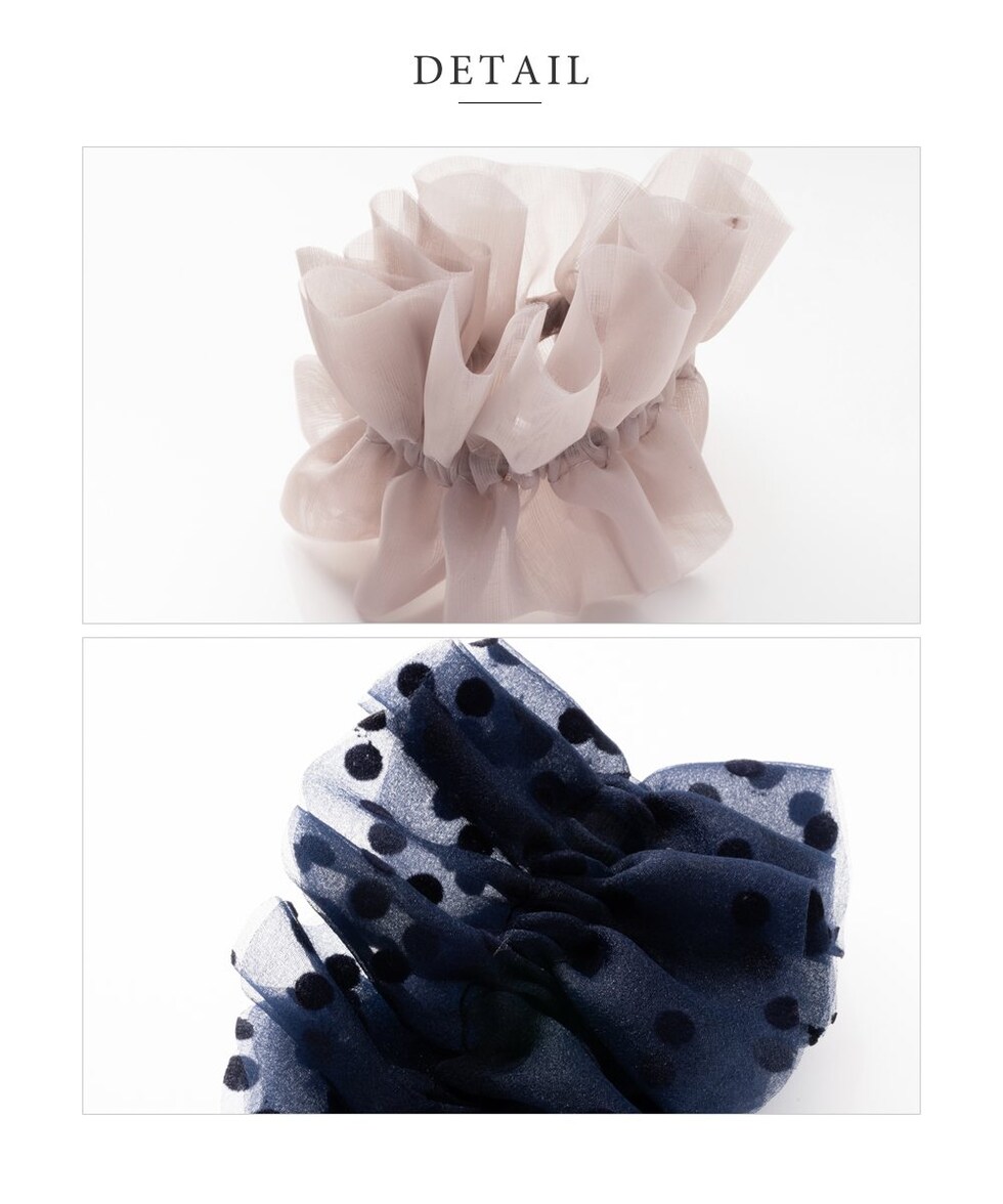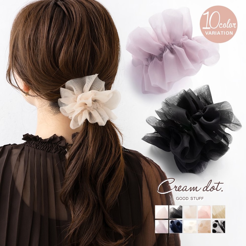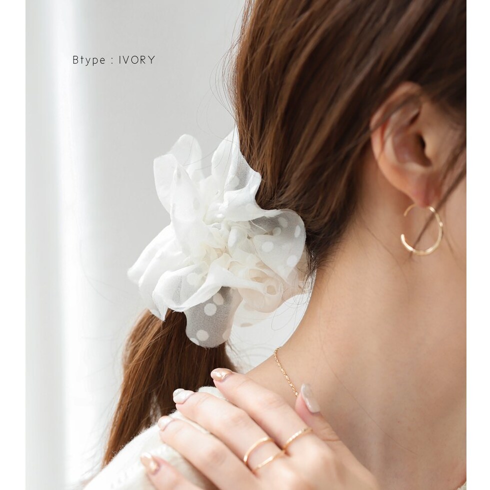 ヘアアクセサリー レディース シュシュ 軽い ボリューム 髪留め まとめ髪 オーガンジー ギャザー 透け感 無地 ドット フリル cream dot ゆうパケット [B:アイボリー_ワンサイズ]