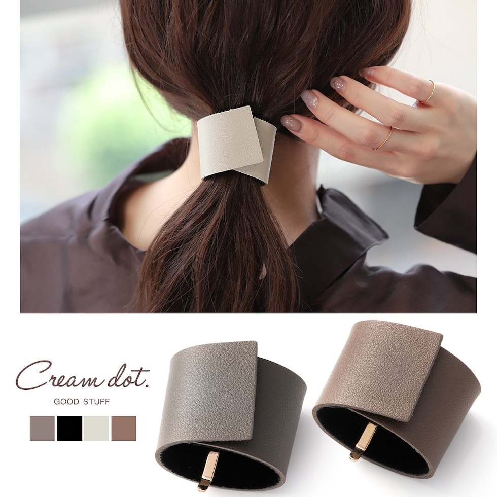 ヘアアクセサリー レディース ポニーフック ヘアフック ヘアカフス ヘアゴム 髪留め まとめ髪 puレザー マグネット 磁石 ワンタッチ ミディアムグレー ライト cream dot ゆうパケット [モカ_ワンサイズ]