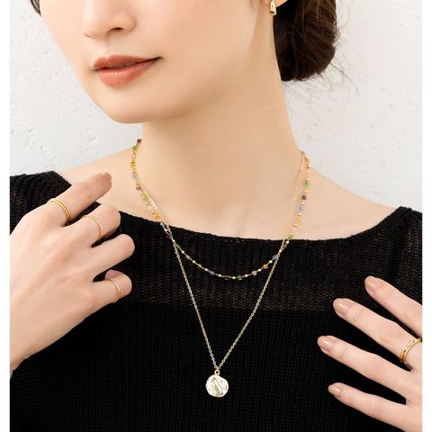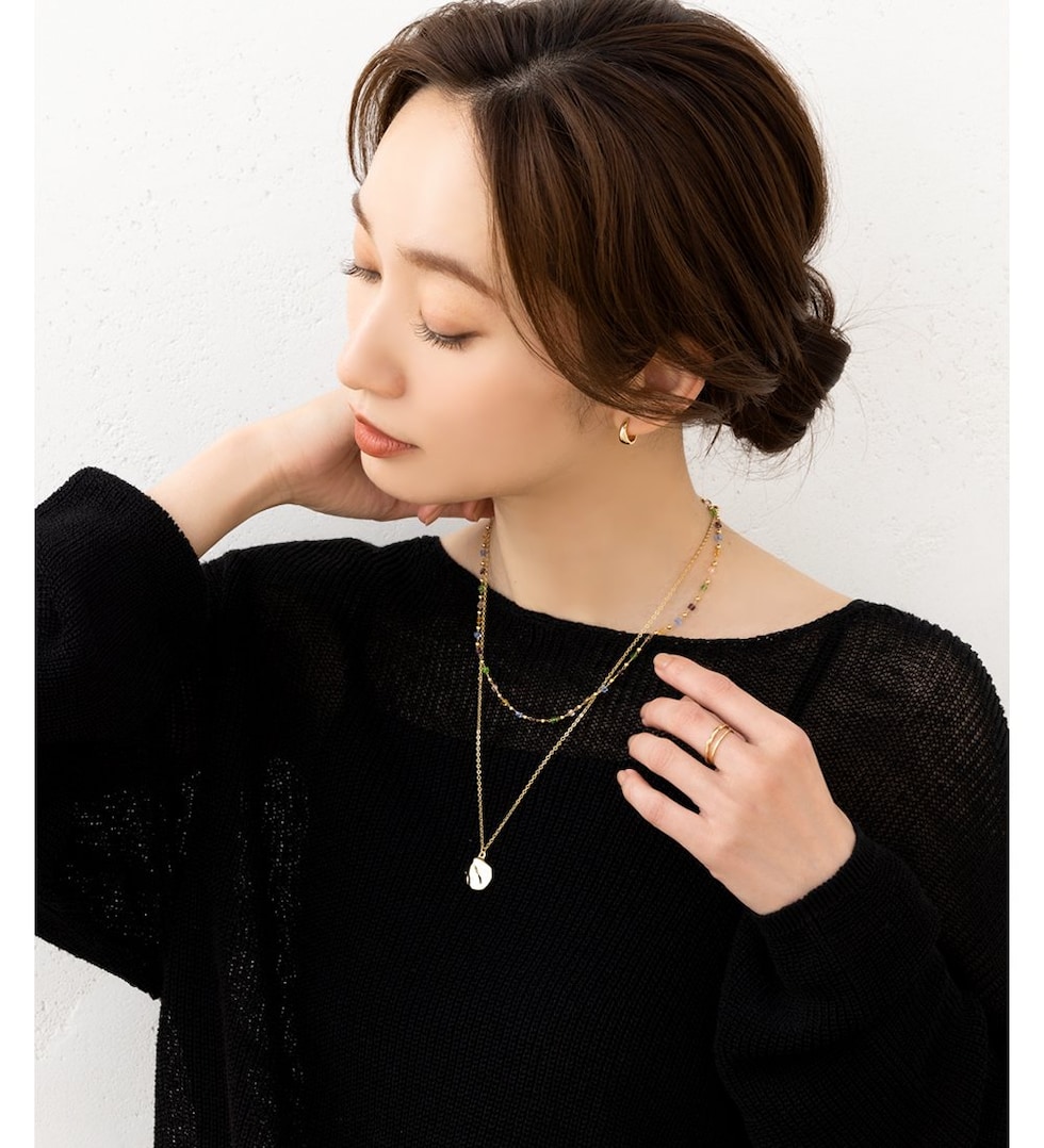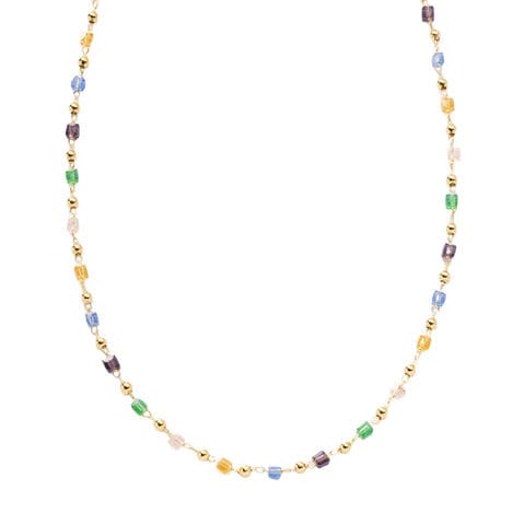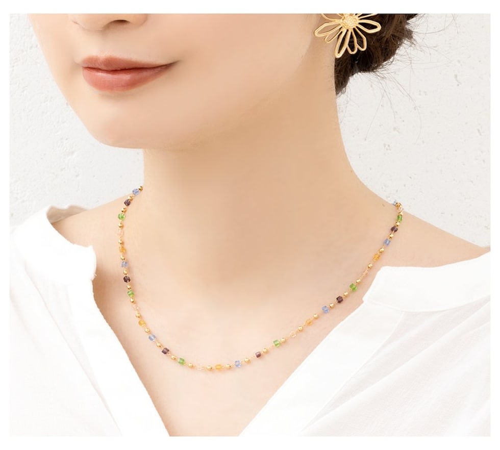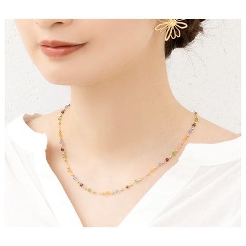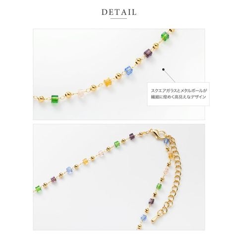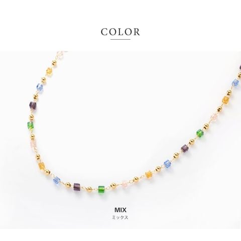 小粒なスクエアガラスを連ねたシーズンライクなネックレス。大人可愛いマルチカラーが、煌めいて目を惹くデザイン◎お手持ちのネックレスとの重ね付けも楽しめる、気分を上げてくれるひと品です。