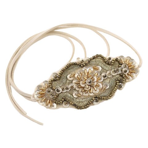 ヘアアクセサリー レディース ポニーフック ヘアフック ヘアカフス ヘアゴム 刺繍 ビーズ スパンコール レザーコード 紐 puレザー スエード調 巻き付け cream dot ゆうパケット [アイボリー_ワンサイズ]