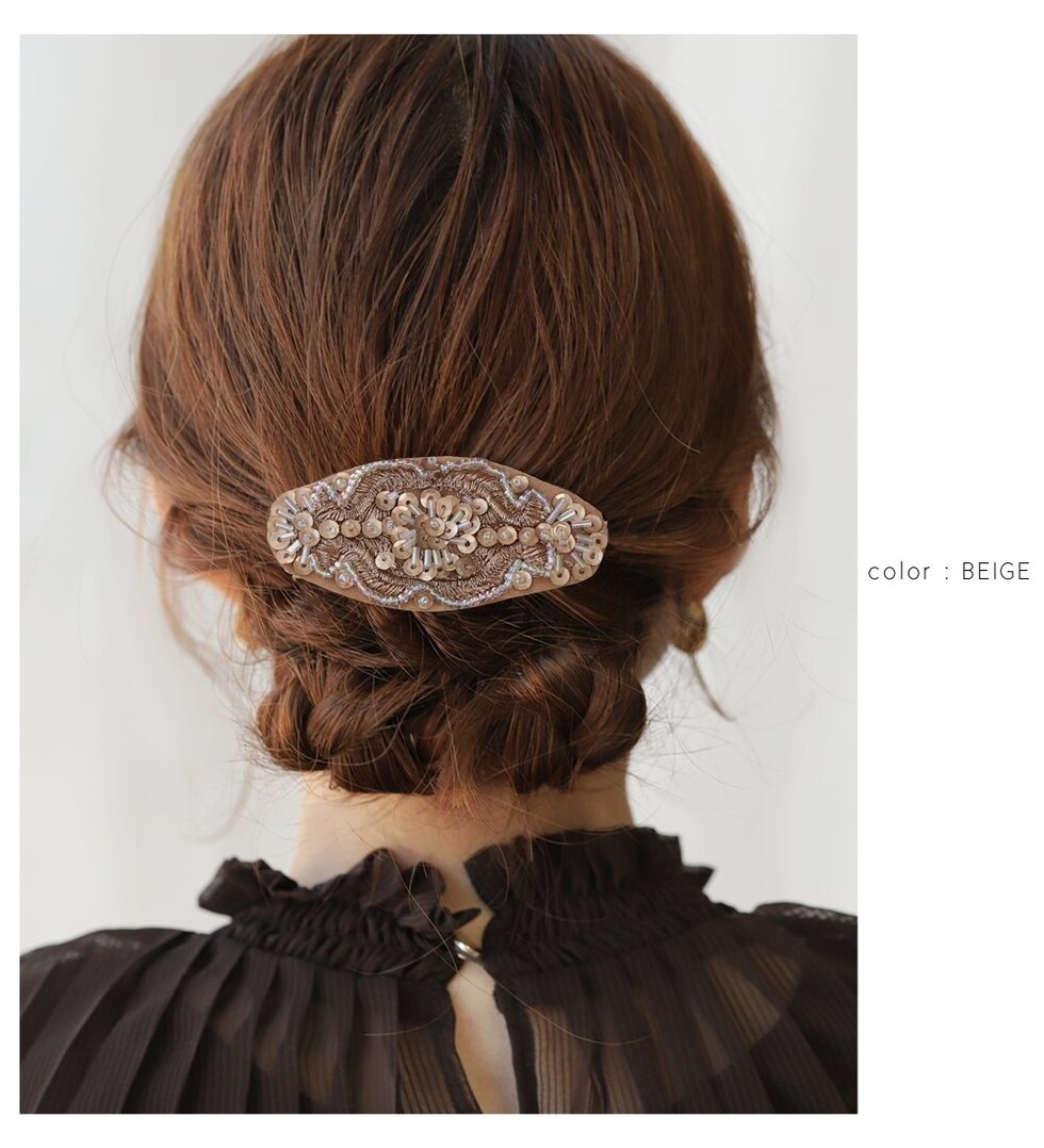 スパンコールやビーズ、繊細な刺繍が施されたデザインは、大人っぽく華やかな雰囲気を演出。いつものヘアスタイルをグッと格上げしてくれる最旬アイテムです。
