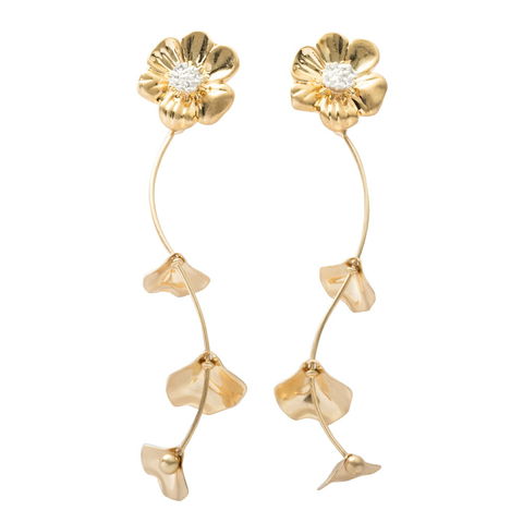ピアス イヤリング レディース 揺れる ネジ式 ヴィンテージ調 ウェーブ フラワー 花 花びら デイジー ボタニカル セミマット ロング cream dot ゆうパケット [ゴールド_イヤリング]