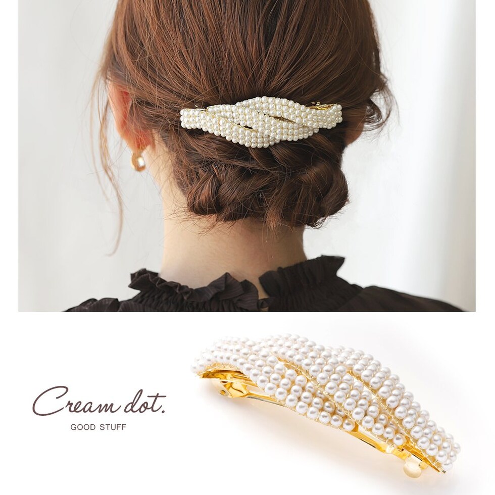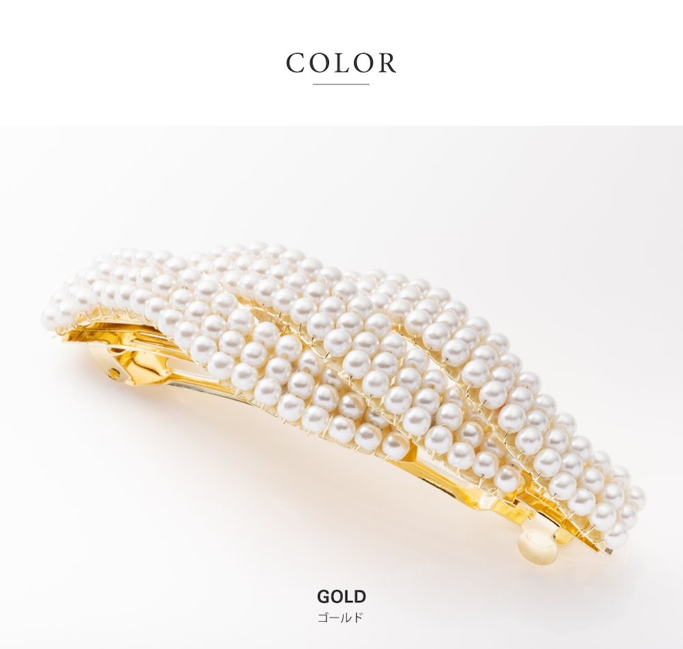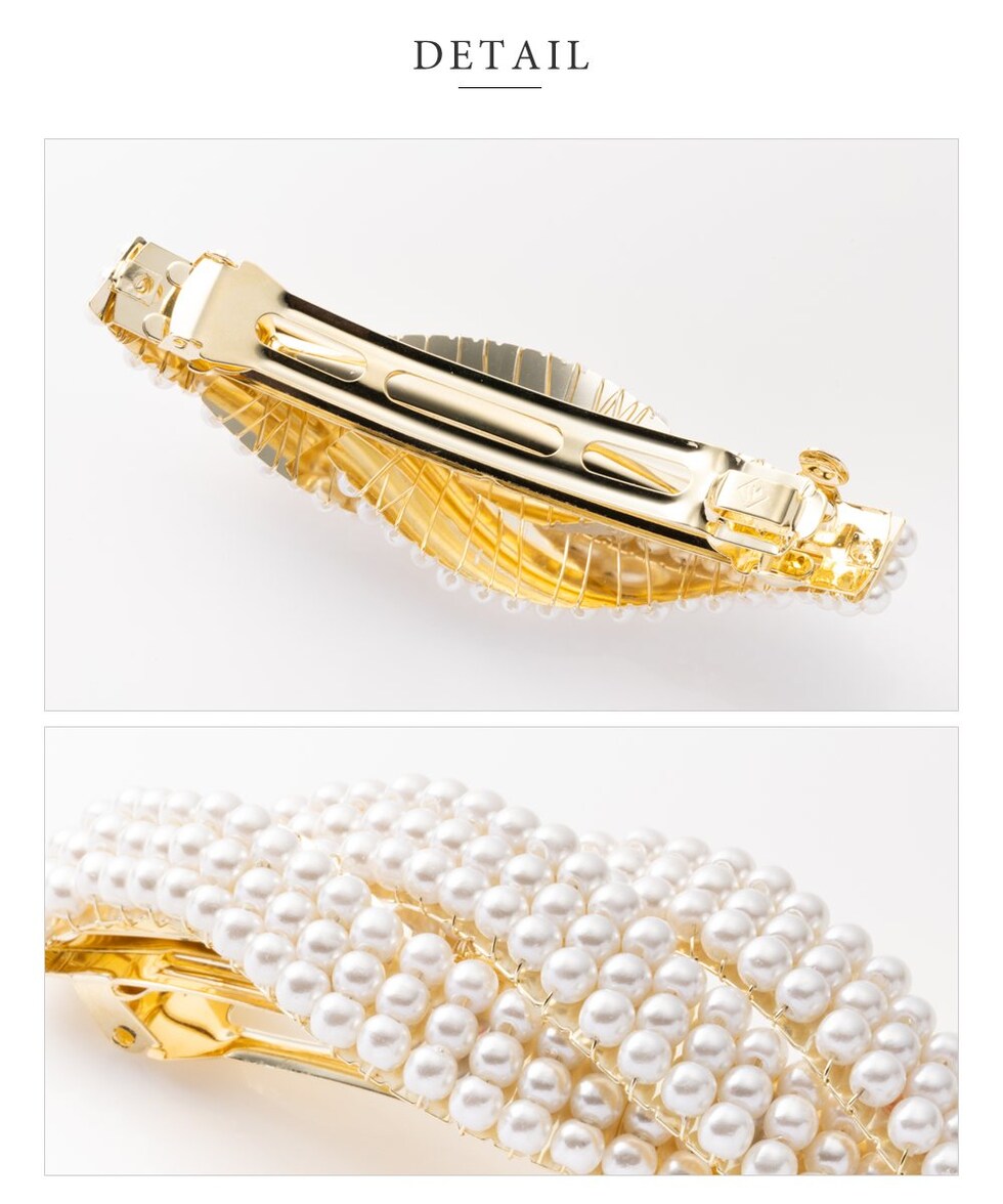 ヘアアクセサリー レディース バレッタ ヘアクリップ 大きめ 髪留め まとめ髪 3連 パール ツイスト ウェーブ ボリューム cream dot ゆうパケット [ゴールド_ワンサイズ]