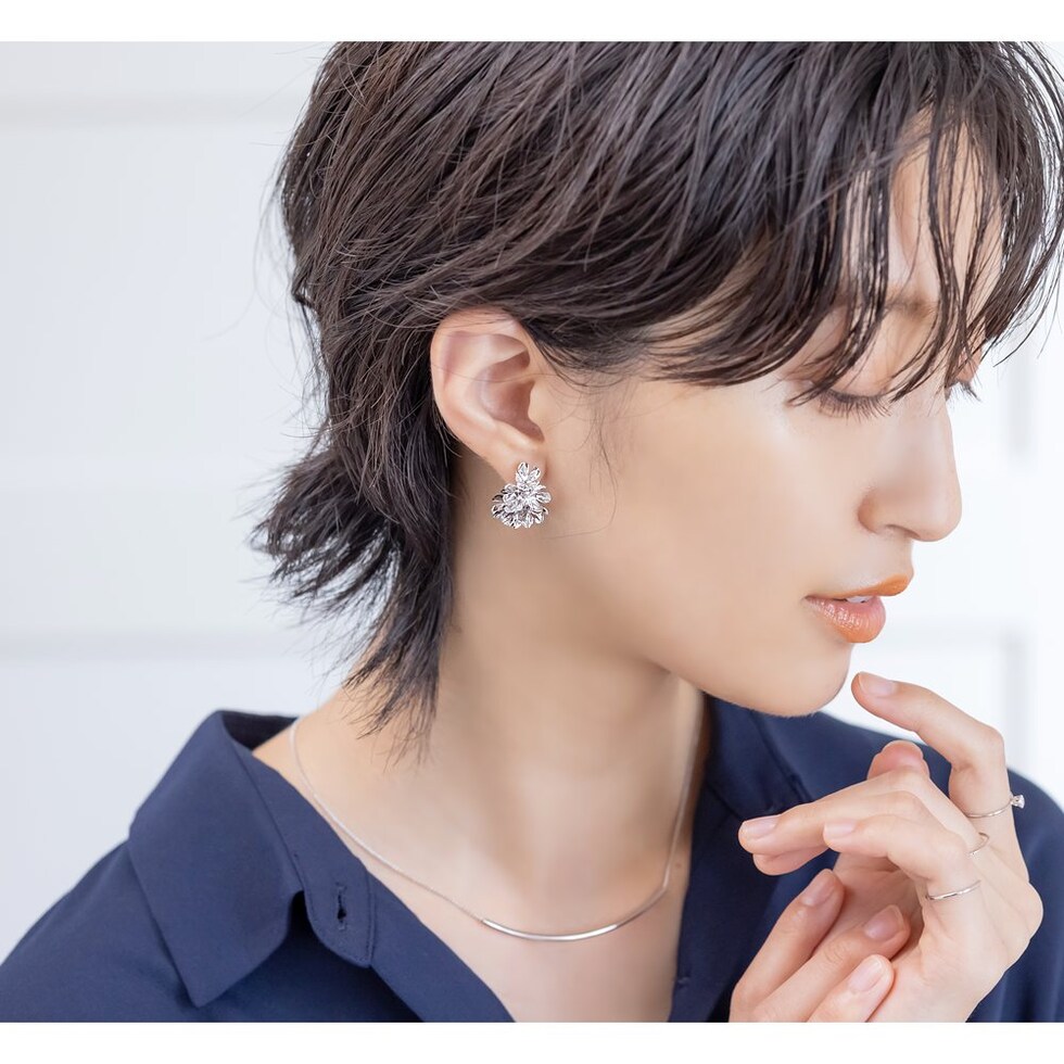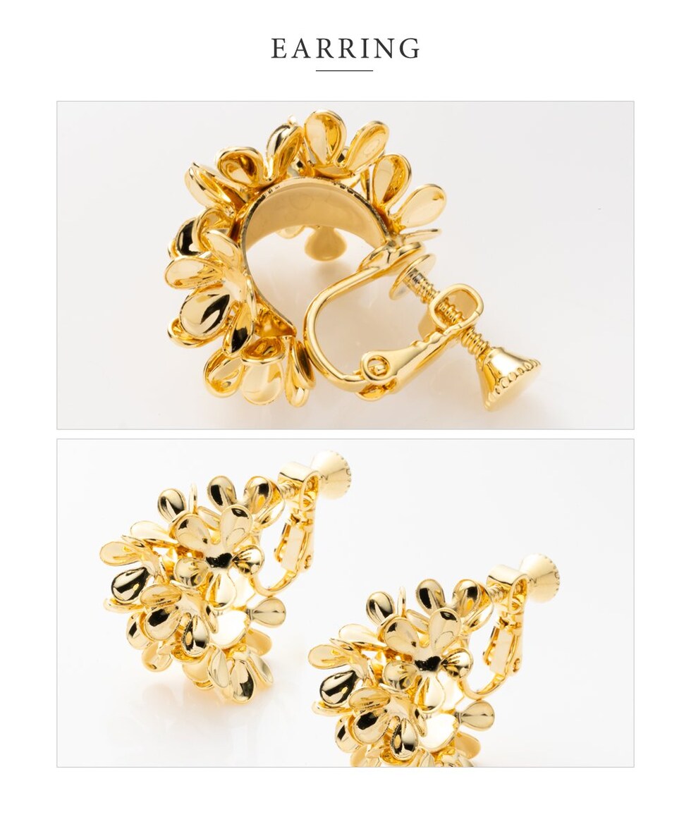 ボリュームのあるボタニカルフラワーが華やかなC型ピアス/イヤリング。視線を惹きつける立体的なシルエットがコーデのアクセントに◎高見えする細やかなデザインで、デイリーからお呼ばれまで幅広く活躍してくれます。