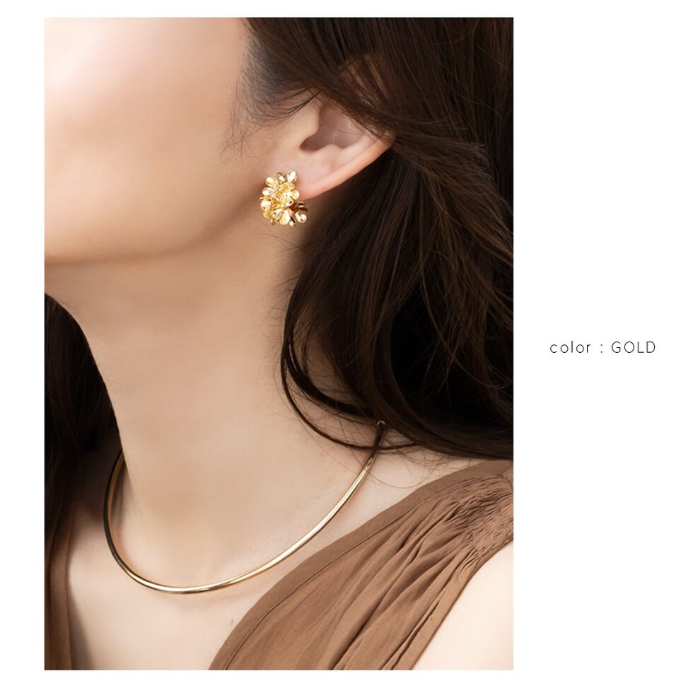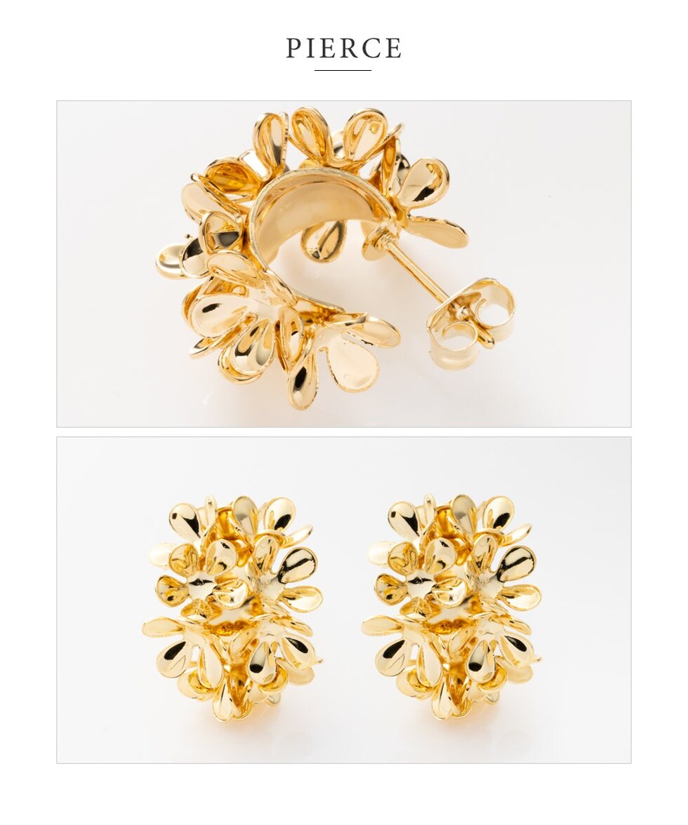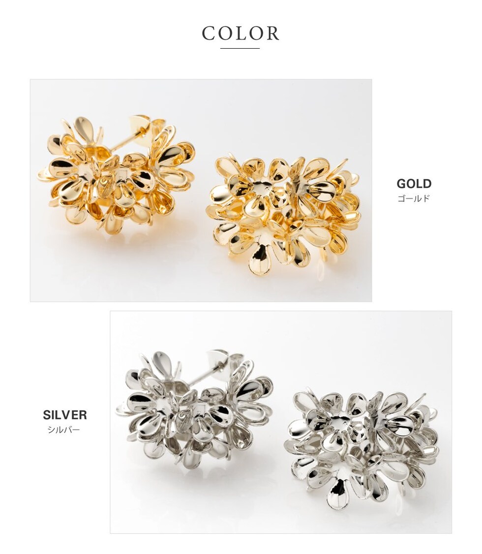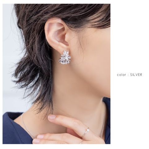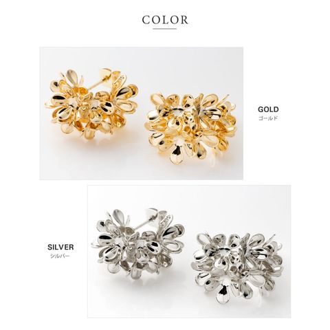ピアス イヤリング レディース ネジ式 メタル フラワー 花 ブーケ 花束 ボリューム 存在感 c型 フープ ボタニカル cream dot ゆうパケット [シルバー_イヤリング]