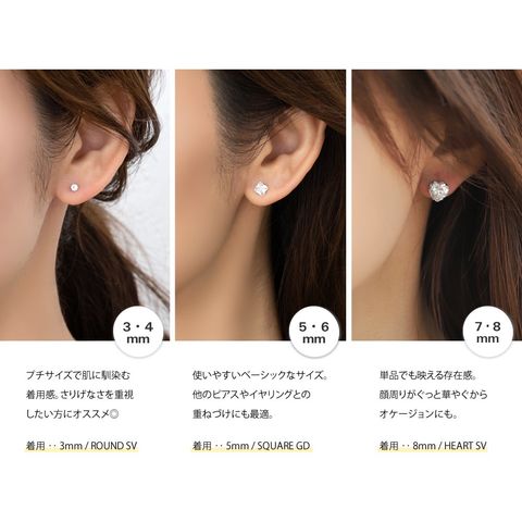 ピアス ステンレス 金属アレルギー サージカルステンレス レディース 96種 つけっぱなし 一粒ビジュー ラウンド ハート スクエア 6サイズ cream dot ゆうパケット [スクエア:クリア×シルバー_3mm]