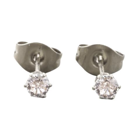 ピアス ステンレス 金属アレルギー サージカルステンレス レディース 96種 つけっぱなし 一粒ビジュー ラウンド ハート スクエア 6サイズ cream dot ゆうパケット [ラウンド:クリア×シルバー_3mm]