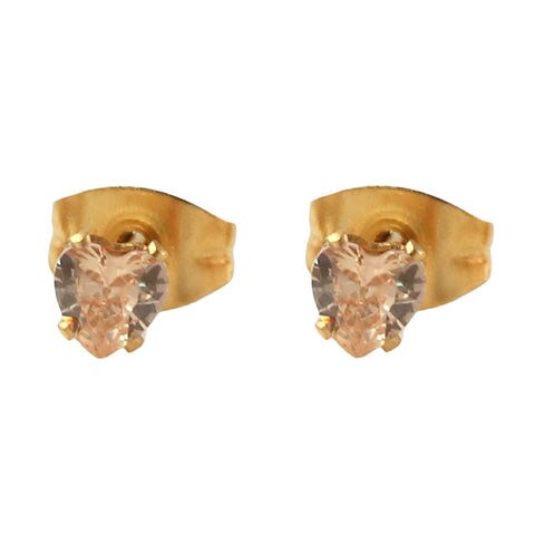 ピアス ステンレス 金属アレルギー サージカルステンレス レディース 96種 つけっぱなし 一粒ビジュー ラウンド ハート スクエア 6サイズ cream dot ゆうパケット [ハート:ベージュ×ゴールド_4mm]