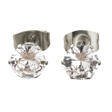 ピアス ステンレス 金属アレルギー サージカルステンレス レディース 96種 つけっぱなし 一粒ビジュー ラウンド ハート スクエア 6サイズ cream dot ゆうパケット [ラウンド:クリア×シルバー_6mm]