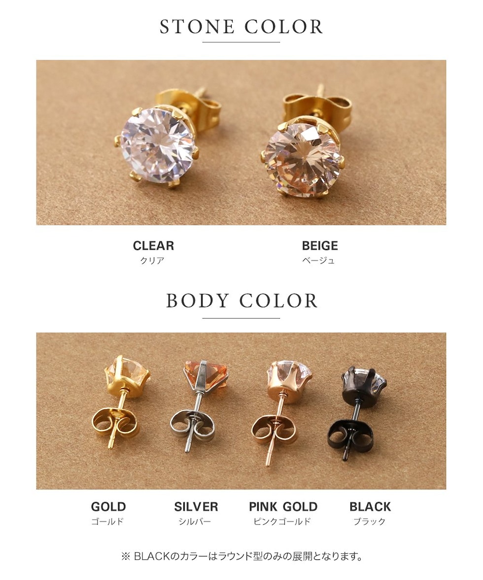 ピアス ステンレス 金属アレルギー サージカルステンレス レディース 96種 つけっぱなし 一粒ビジュー ラウンド ハート スクエア 6サイズ cream dot ゆうパケット [ラウンド:ベージュ×シルバー_8mm]