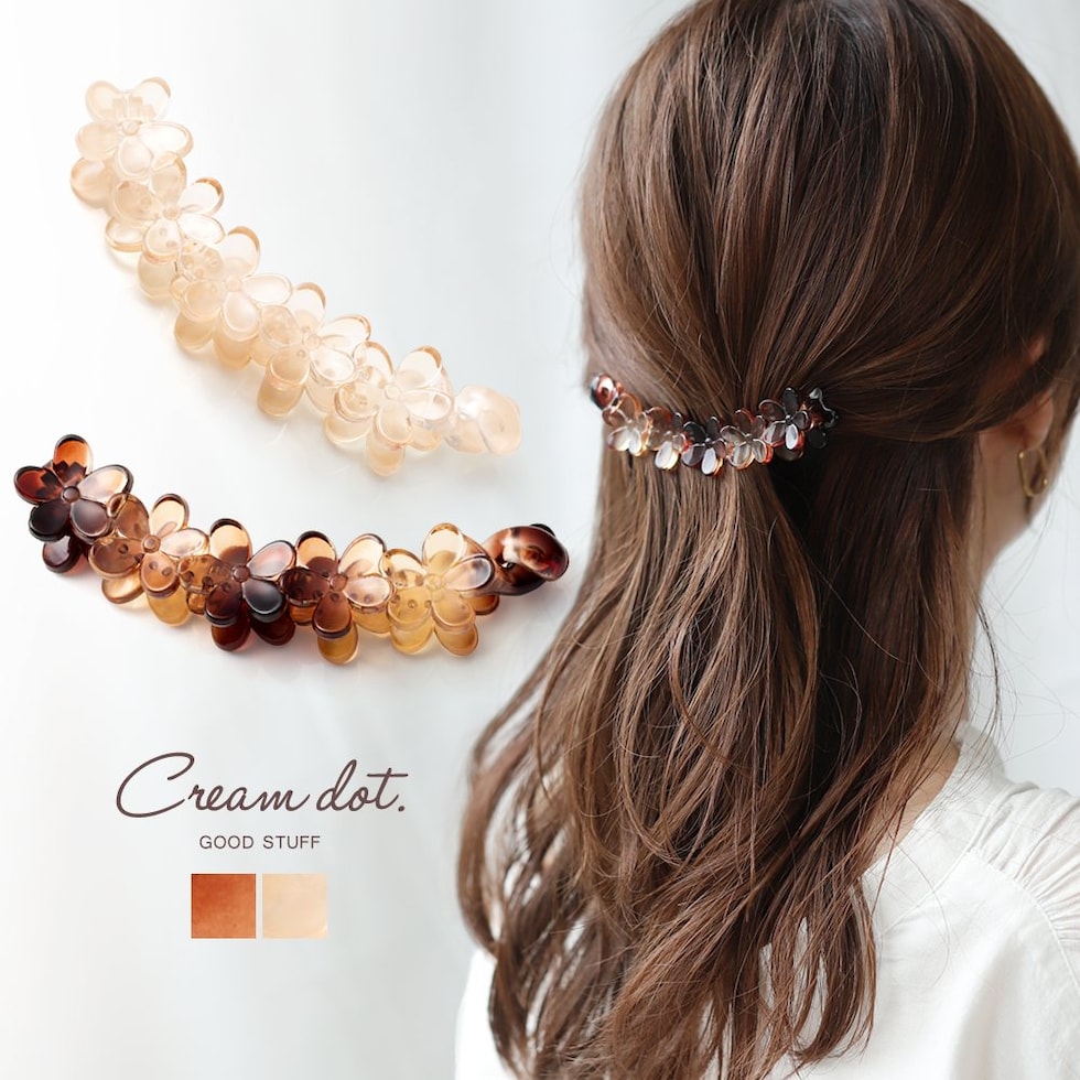 ヘアアクセサリー レディース バナナクリップ 大きめ しっかり留まる フラワー ヘアクリップ 髪留め まとめ髪 ニュアンスカラー 透明感 マーブル cream dot ゆうパケット[ベージュ_ワンサイズ]