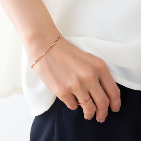 動く度に手元で繊細に煌めき、大人の抜け感を演出。サラッと1本で着用しても、重ね着けしても楽しめるアイテムです。シンプルで品の良いデザインだからリングとも相性◎錆びにくいステンレス製でデイリーに活躍しそう。