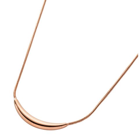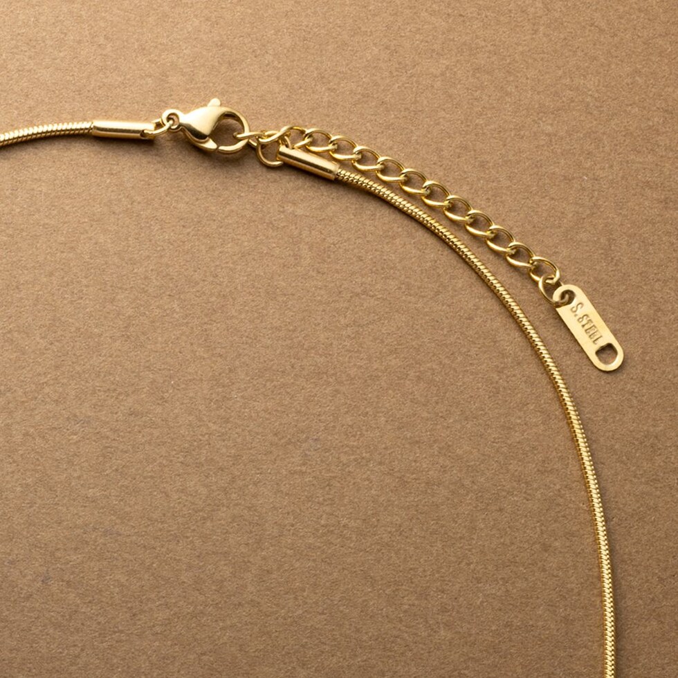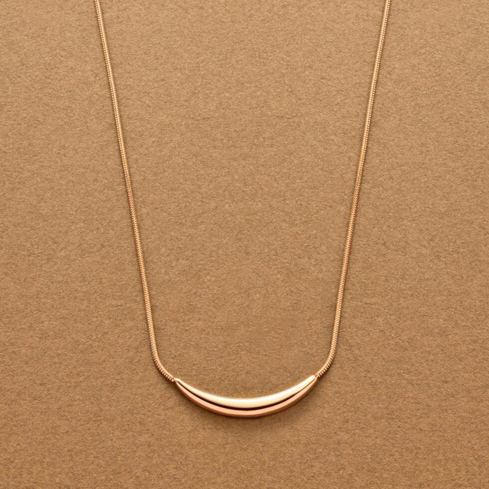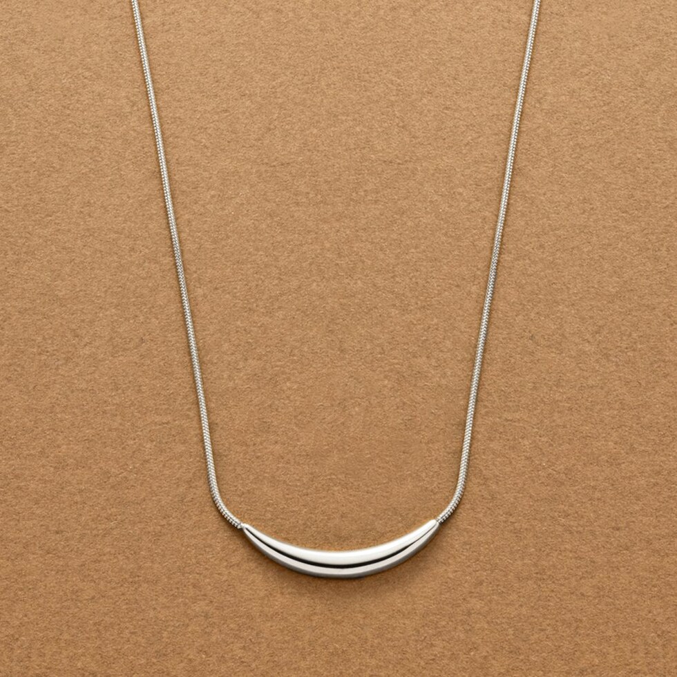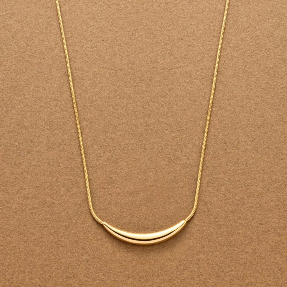 艶めくクレッセントモチーフが大人上品なロングネックレス。シンプルなデザインとしなやかなスネークチェーンが、コーデに洗練された雰囲気をプラスします。錆びにくいステンレス製でデイリーに活躍するひと品。