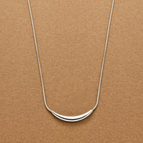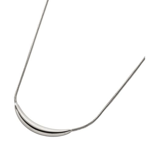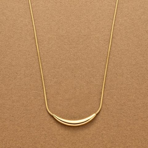 艶めくクレッセントモチーフが大人上品なロングネックレス。シンプルなデザインとしなやかなスネークチェーンが、コーデに洗練された雰囲気をプラスします。錆びにくいステンレス製でデイリーに活躍するひと品。