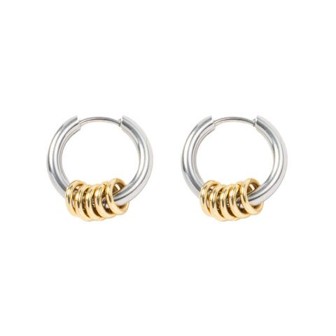 多重リングパーツのキャッチレスフープピアス。男女を問わず身につけられるタイムレスなルックスでコーデに合わせやすいアイテムです。リングパーツはお好みの数にアレンジしたり、取り外してシンプルなフープピアスとして使っても◎錆びにくく傷に強いステンレス製で長く愛用頂けます。