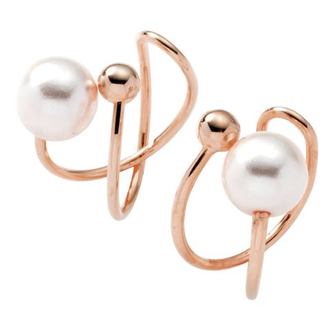 スフィアパール×クロスラインの両耳用イヤーカフ。滑らかなクロスワイヤーに一粒パールを添えた女性らしいデザイン。イヤーカフとしてはもちろんカフイヤリングにもなる2way仕様が嬉しい◎