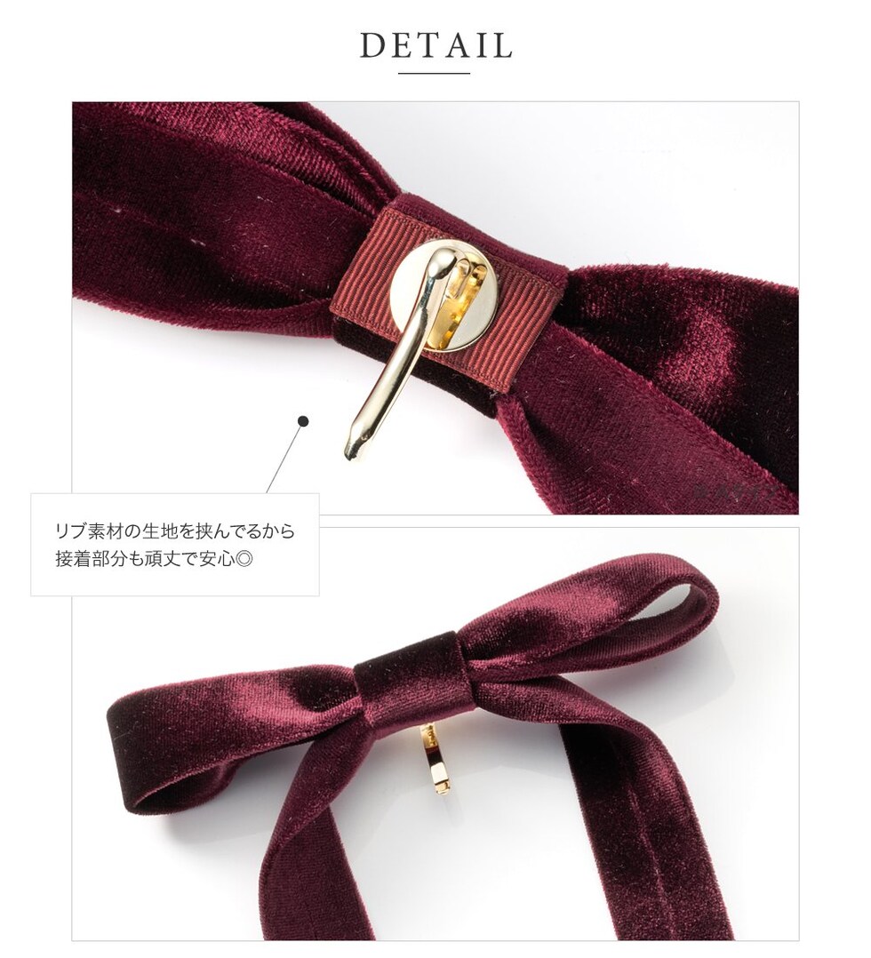 微光沢で高級感のあるベロア素材を使用。両面同素材のデザインで、裏側が見えても高見えします。フックをリブ素材でボンディングしていて、しっかりとした造りなのも嬉しいpoint◎