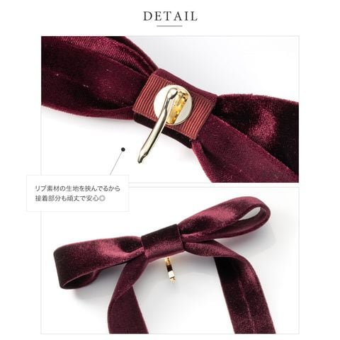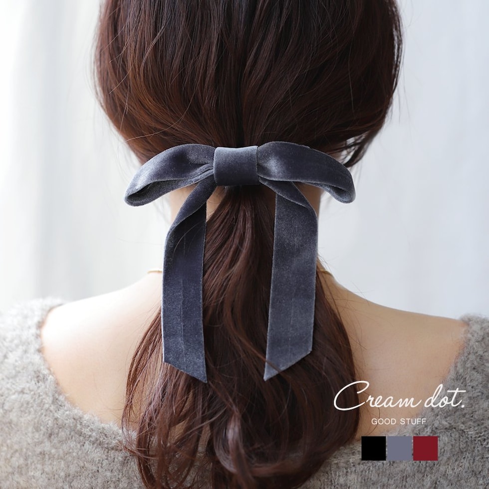 ヘアアクセサリー レディース ポニーフック ベロア リボン 大きめ ベルベット ヘアフック ヘアカフス ヘアゴム 髪留め まとめ髪 差し色 ワイン cream dot ゆうパケット [ワイン_ワンサイズ]