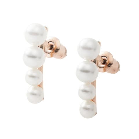 イヤリング ピアス レディース ネジ式 カーブ シェイプ パール 4連 cream dot ゆうパケット [ピンクゴールド_ピアス]