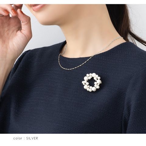 ブローチ フォーマル 卒業式 卒園式 入学式 入園式 ママスーツ コサージュ ピン サークル ラウンド型 ランダム パール cream dot ゆうパケット [シルバー_ワンサイズ]