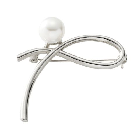 メタルラインに一粒パールをあしらったブローチ。柔らかな曲線とパールのデザイが上品な一品。お祝いシーンなど華やかな日の装いはもちろん、シンプルなトップス、アウターやマフラーのアクセントにもオススメです◎