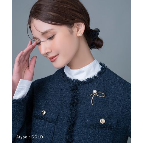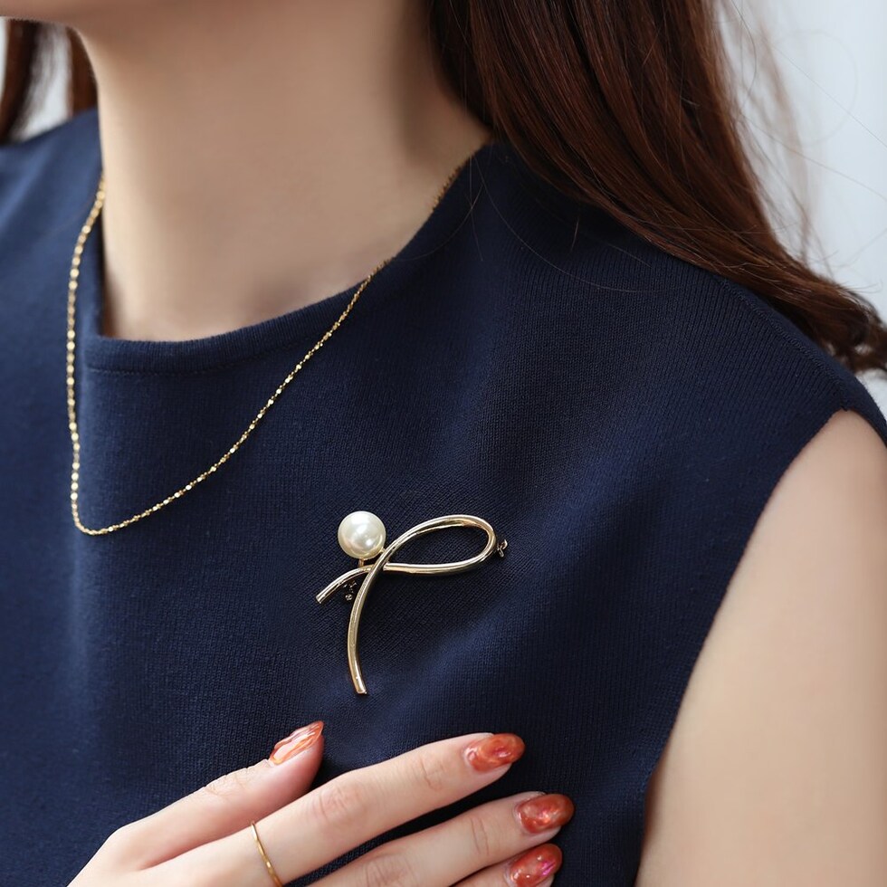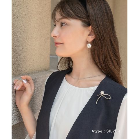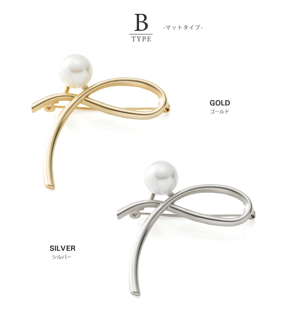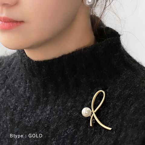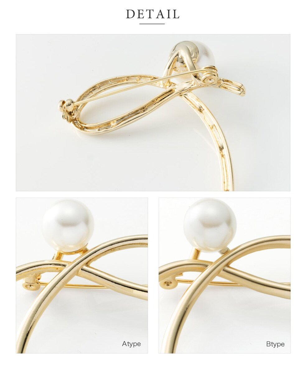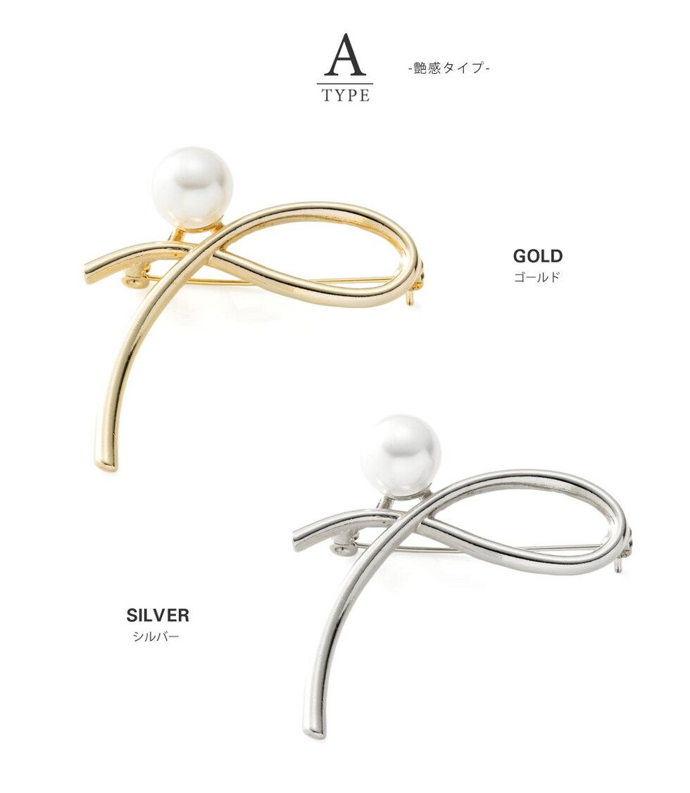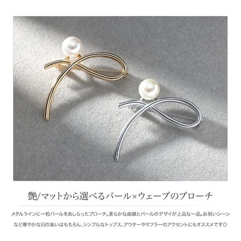 メタルラインに一粒パールをあしらったブローチ。柔らかな曲線とパールのデザイが上品な一品。お祝いシーンなど華やかな日の装いはもちろん、シンプルなトップス、アウターやマフラーのアクセントにもオススメです◎