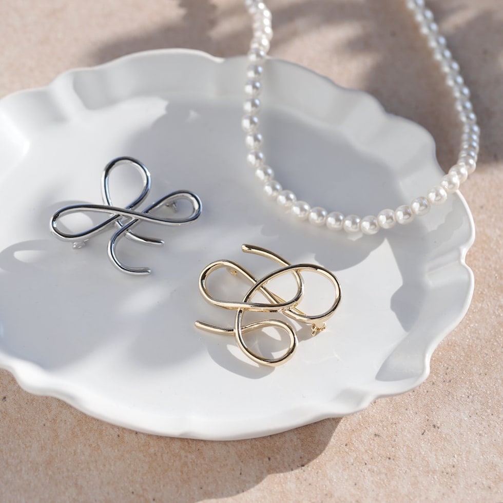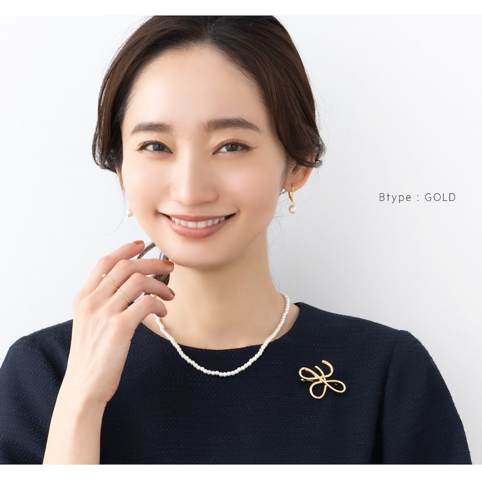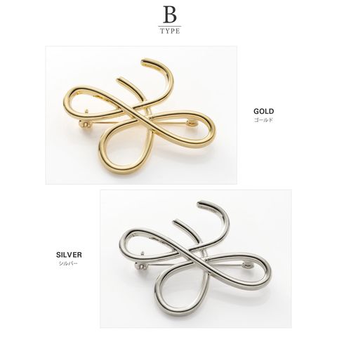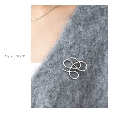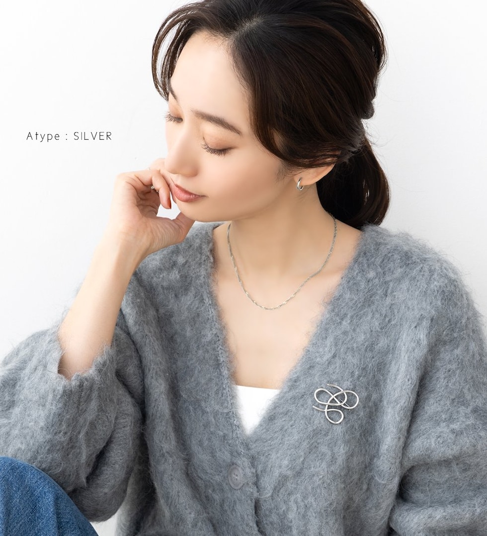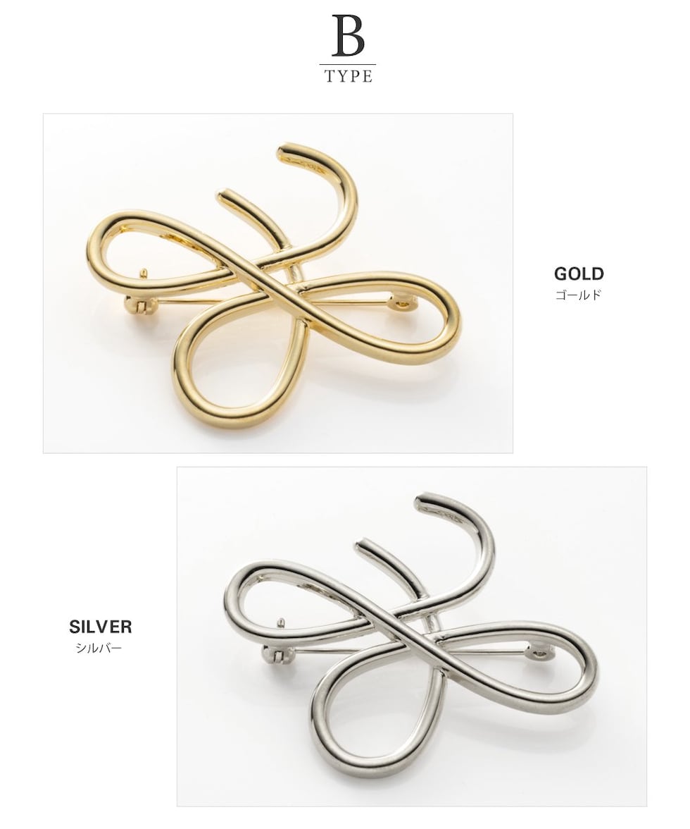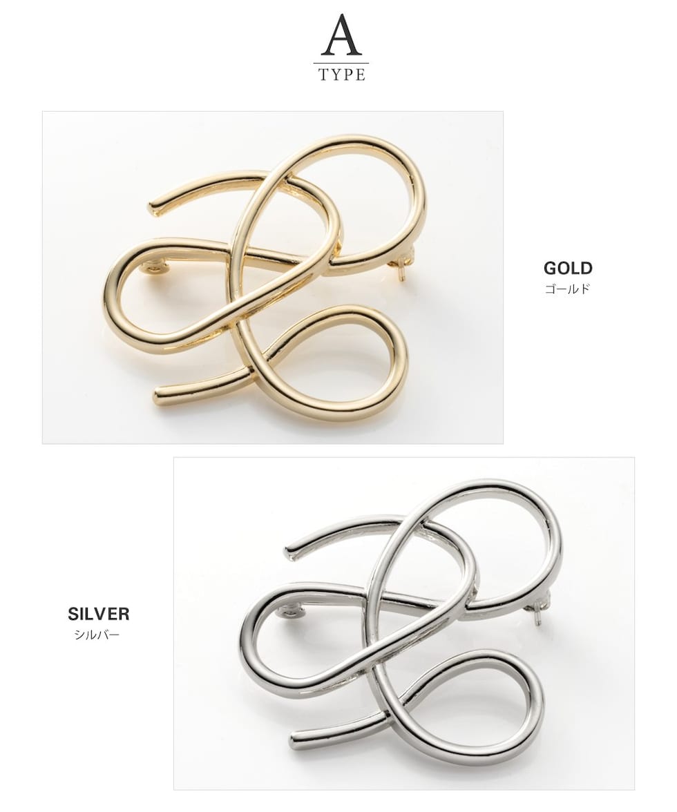 ブローチ 普段使い フォーマル 卒業式 卒園式 入学式 入園式 ママスーツ コサージュ ピン 手書き風 モノグラム メタル 変形 曲線 cream dot ゆうパケット [B:シルバー_ワンサイズ]