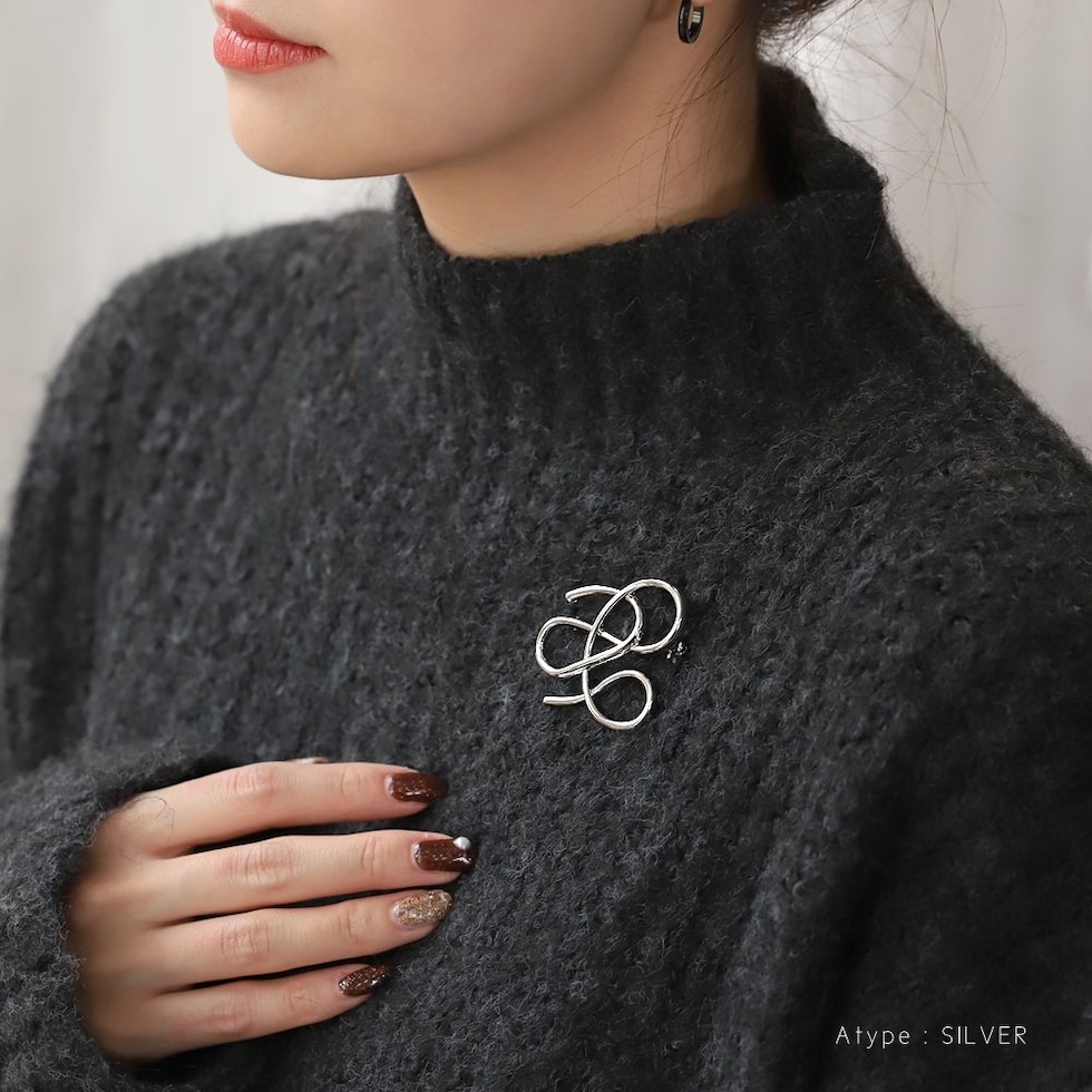 手書きのような抜け感のあるラインがおしゃれなメタルブローチ。程よいサイジングとモノグラムのようなデザインがコーデのアクセントに◎シンプルなトップスはもちろん、アウターやマフラーなどにつけるのもオススメです。