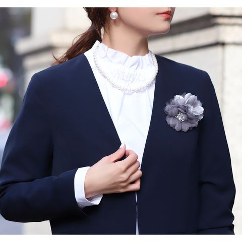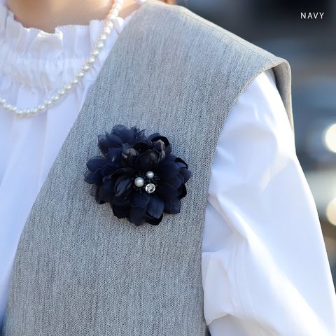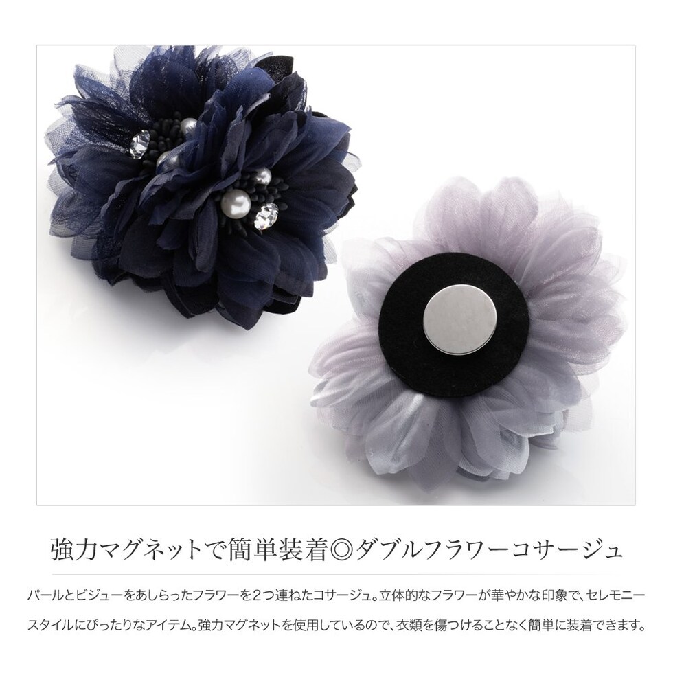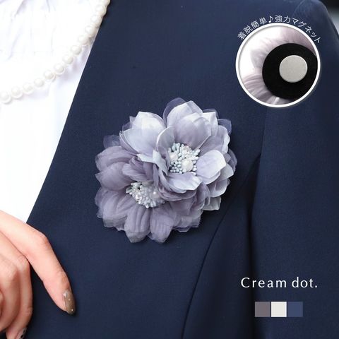 コサージュ パール フォーマル 卒業式 卒園式 入学式 入園式 ママスーツ マグネット 磁石 ビジュー フラワー 花 ダブル ワンポイント ネイビー cream dot ゆうパック [ネイビー_ワンサイズ]