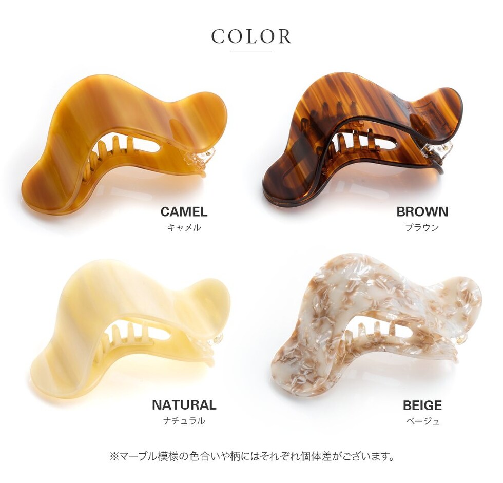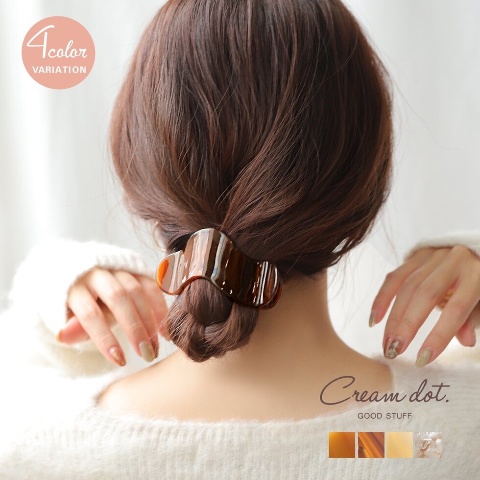 ヘアアクセサリー レディース ヘアクリップ 大きめ しっかり留まる 髪留め まとめ髪 セルロイド マーブル ニュアンス ウェーブ 変形 cream dot 定形外郵便 [ナチュラル_ワンサイズ]