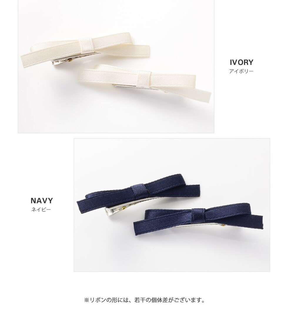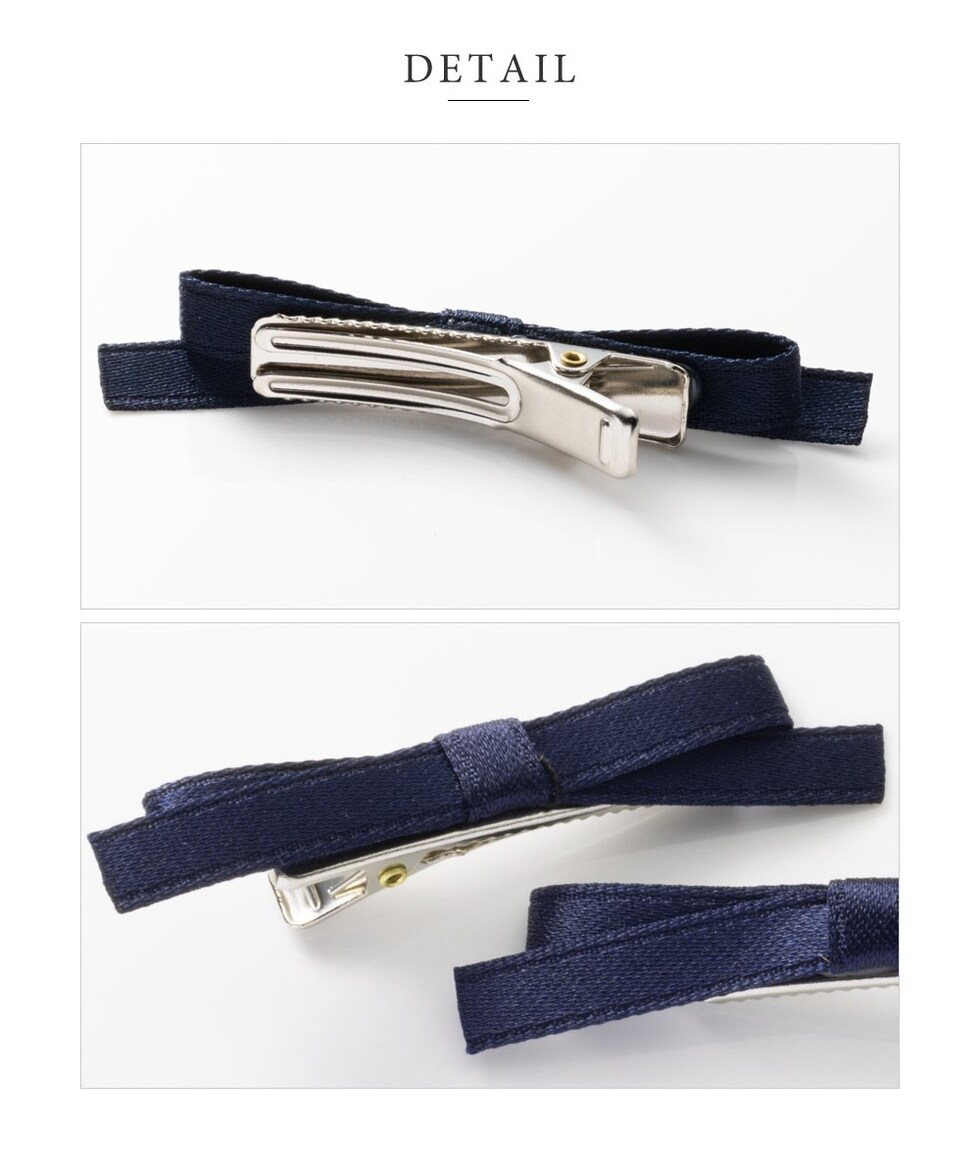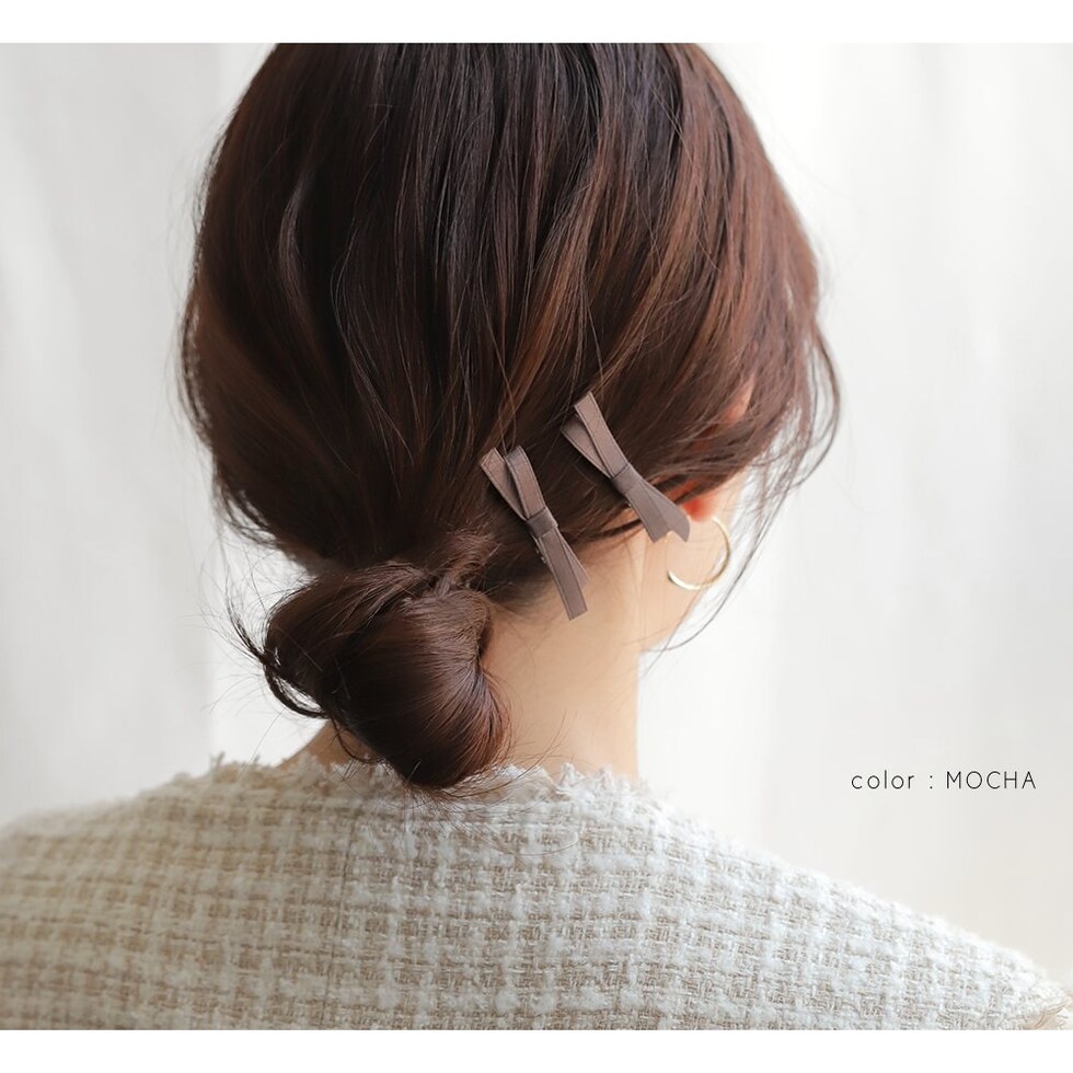 ほんのり光沢のあるサテン調生地を使用した同色2セットのヘアクリップ。小さめのサイジングとニュアンスカラーが甘くなりすぎず、大人の女性にも取り入れやすいアイテム◎ヘアスタイルのワンポイントとしてオススメです。
