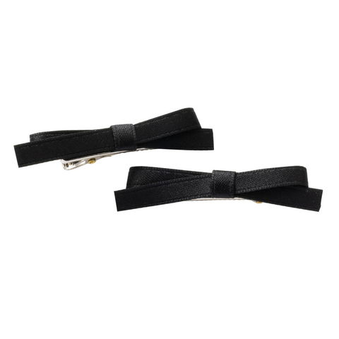 ヘアアクセサリー レディース 2点セット ヘアクリップ サテン調 ミニ リボン 前髪 小さめ 小さい 髪留め まとめ髪 光沢 ボルドー cream dot ゆうパケット [ブラック_2セット]