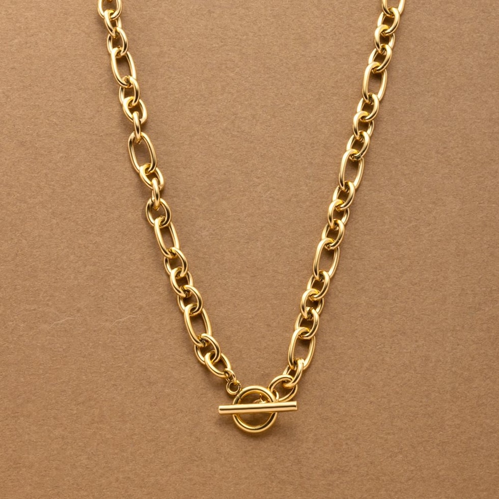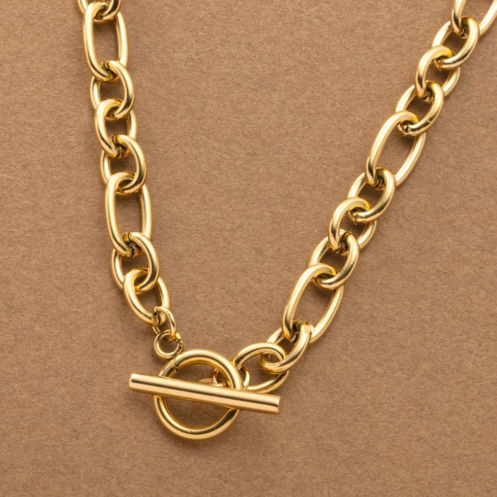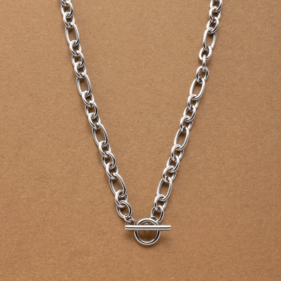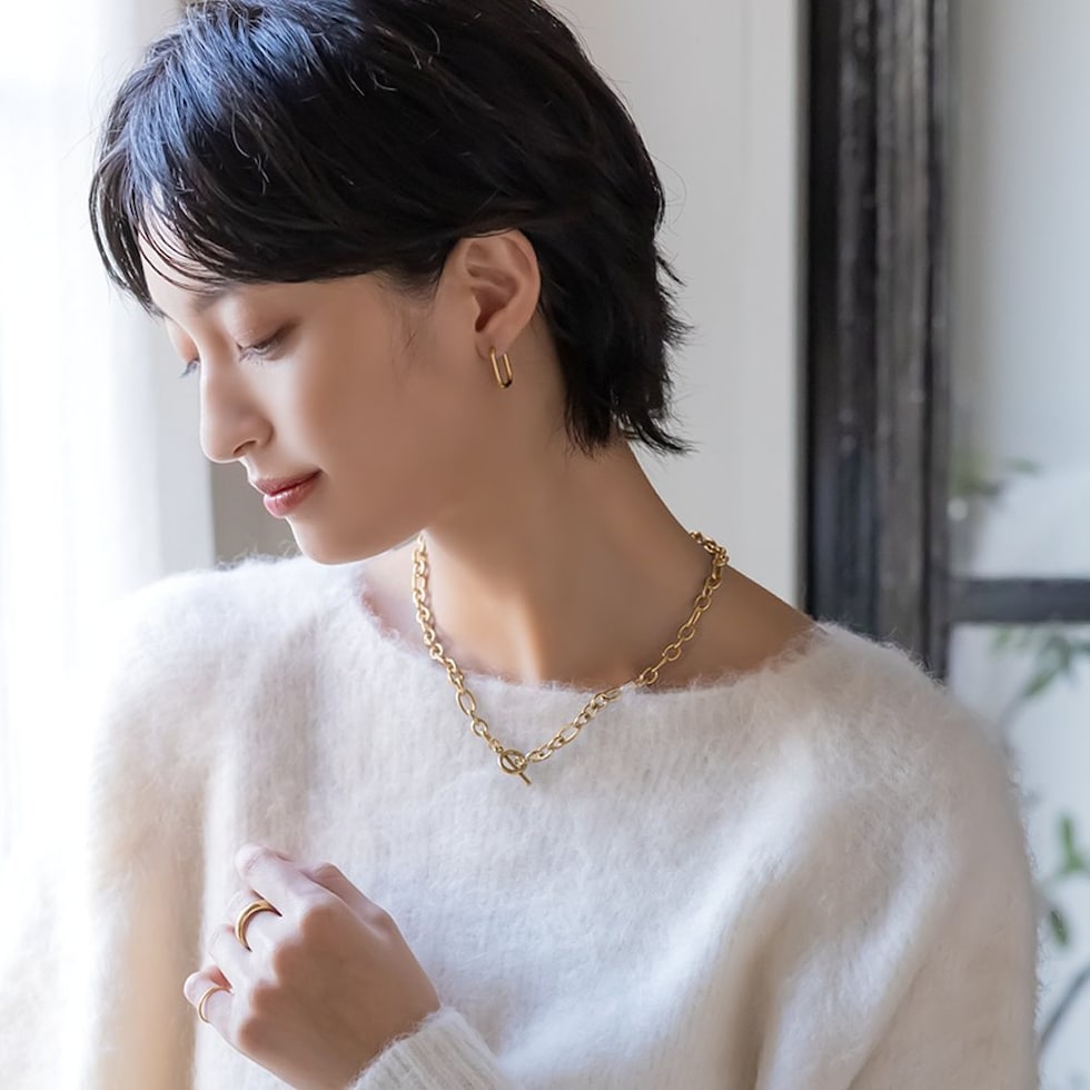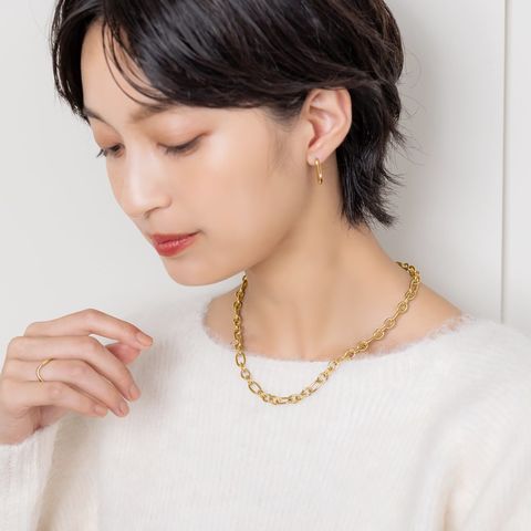 重厚感たっぷりなフィガロチェーンのステンレス製マンテルネックレス。絶妙なボリューム感でちょっぴりごつめなチェーンがひと味違う今っぽいスタイルを完成させます。シンプルやカジュアルに映える存在感抜群なアイテム。錆びにくいステンレス製でデイリーに活躍しそう◎