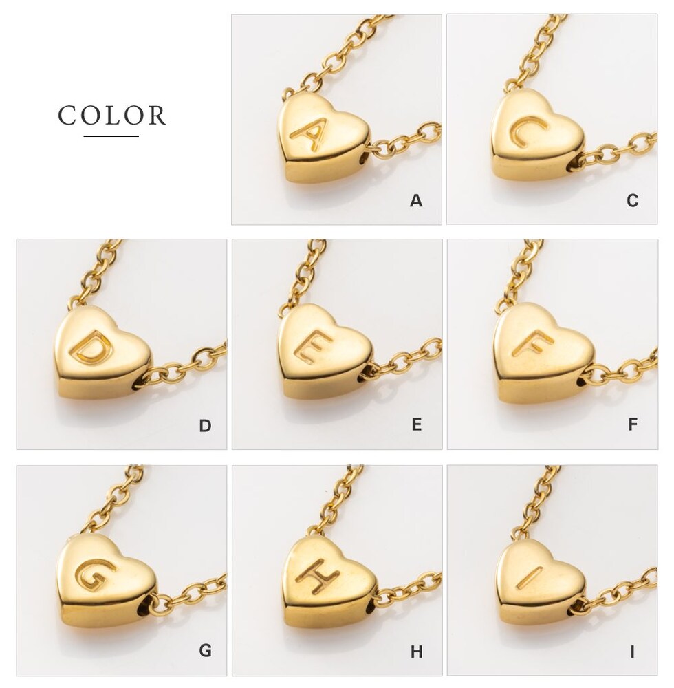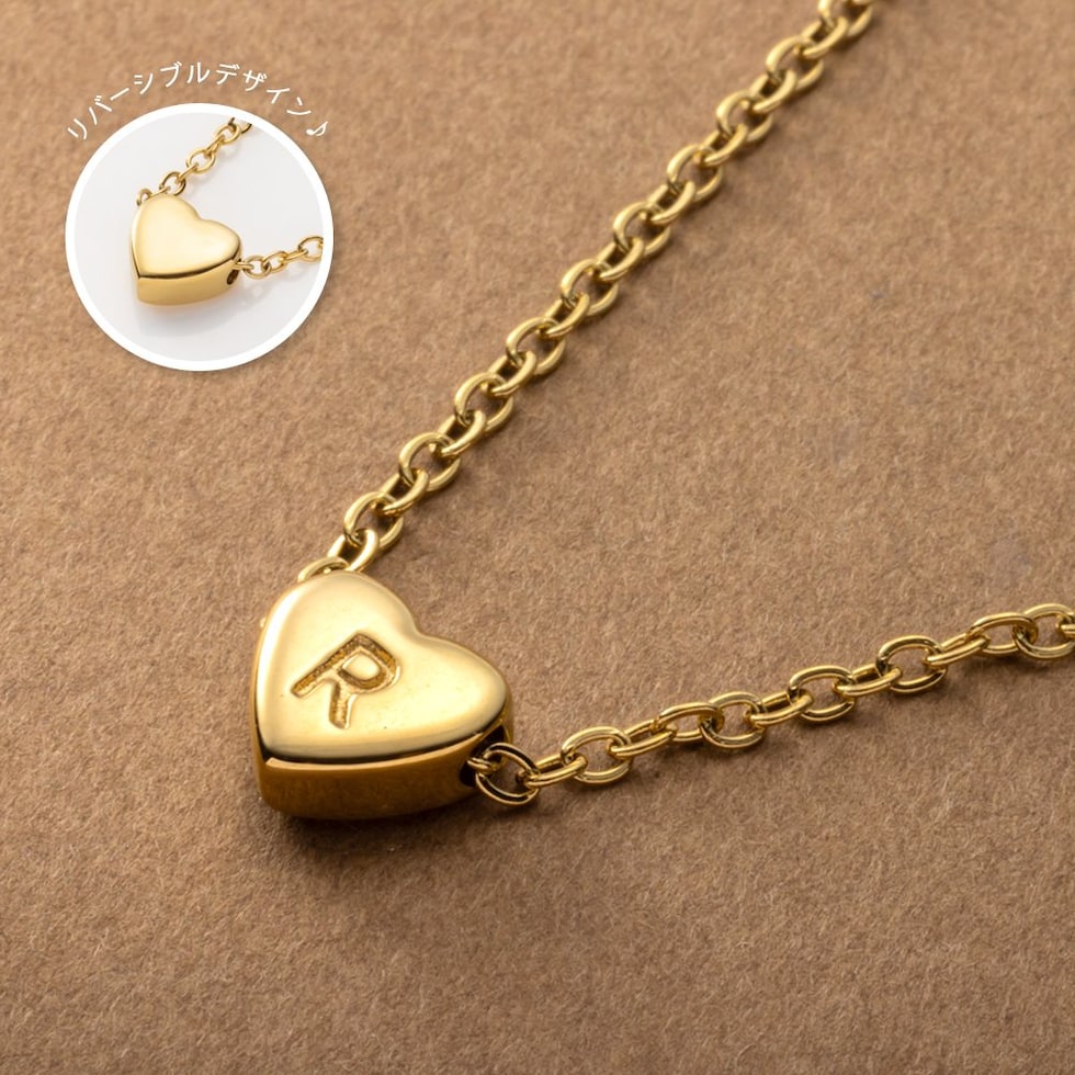 大人っぽい小ぶりなメタルハートにイニシャルを刻印したネックレス。モチーフにマッチした細字のイニシャルで、主張しすぎないさりげない雰囲気が◎リバーシブルでも使えるデザインで、ご自身用にはもちろんちょっとした贈り物にもぴったり。錆びにくく傷に強いステンレス製です。