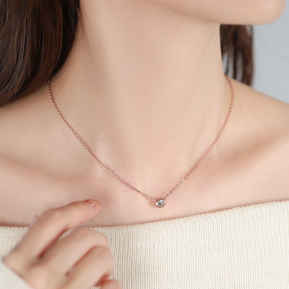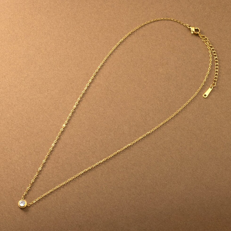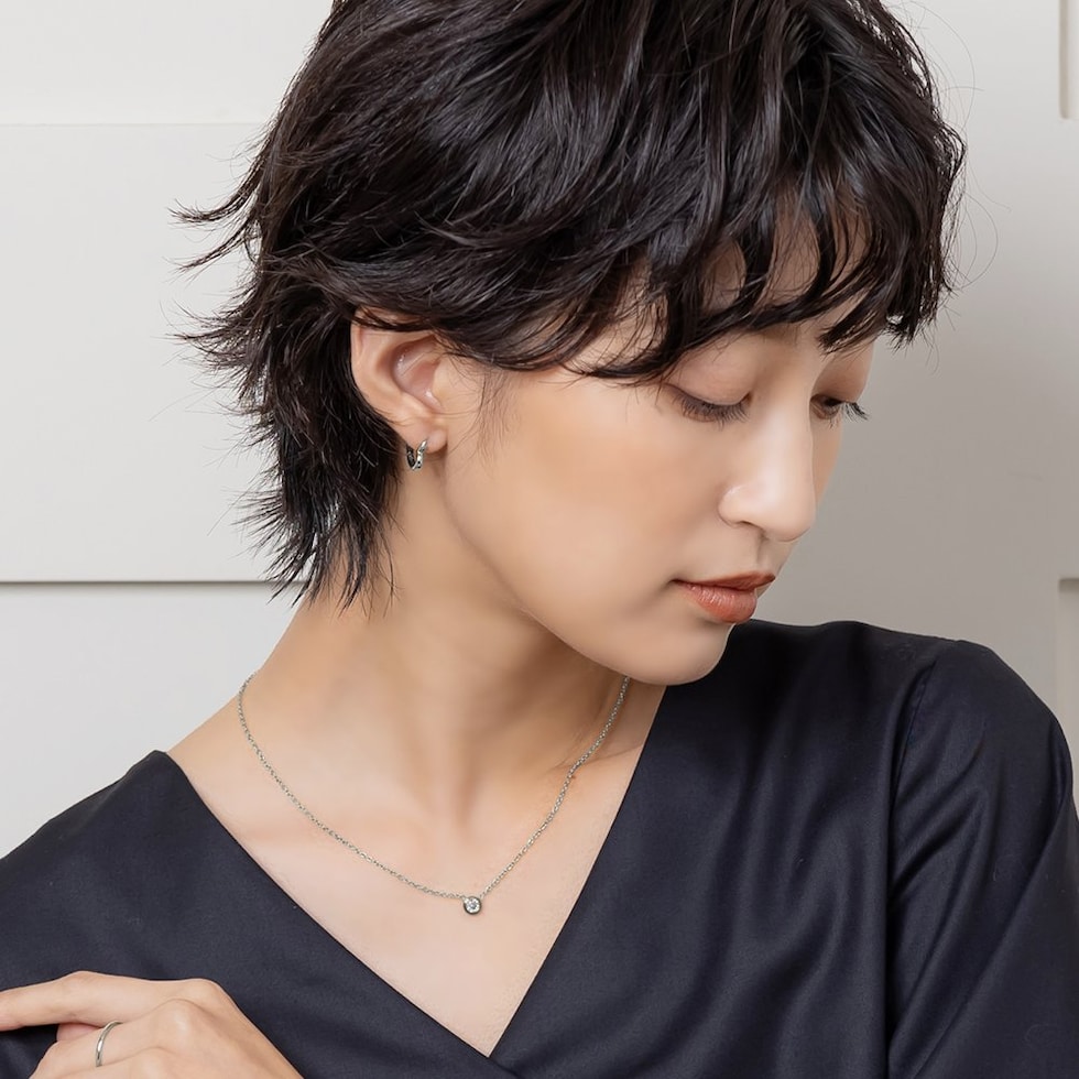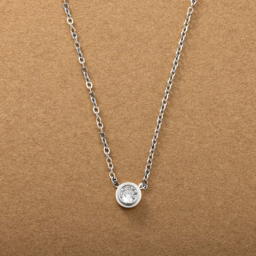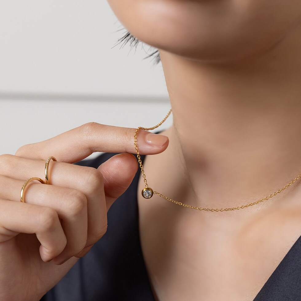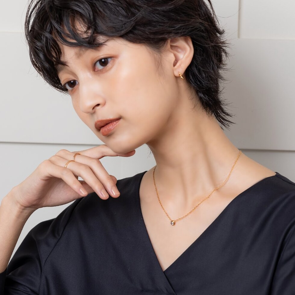 ビジューが輝くシンプルで身に着けやすいネックレス。エクレアチェーンが上品ですっきりとした胸元を演出します。ステンレス素材だから長時間の着用も安心で、毎日つけたくなるアイテム。