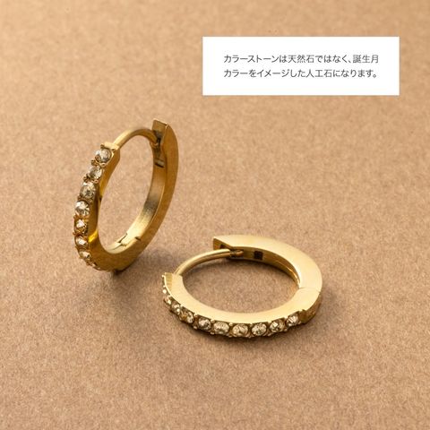 ピアス ステンレス 金属アレルギー サージカルステンレス レディース フープ つけっぱなし フープ ビジュー 誕生石カラー 誕生色 誕生カラー キャッチレス cream dot ゆうパケット [3月_ゴールド]