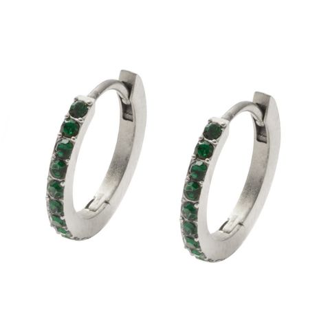 並んだカラービジューがリッチで上品な印象を演出するキャッチレスフープピアス。誕生月をイメージしたビジューがコーデにアクセントを添えてくれます。シンプルなデザインと錆びにくく傷に強いステンレス製でデイリーに大活躍。長時間の着用も安心の低アレルギー素材です。