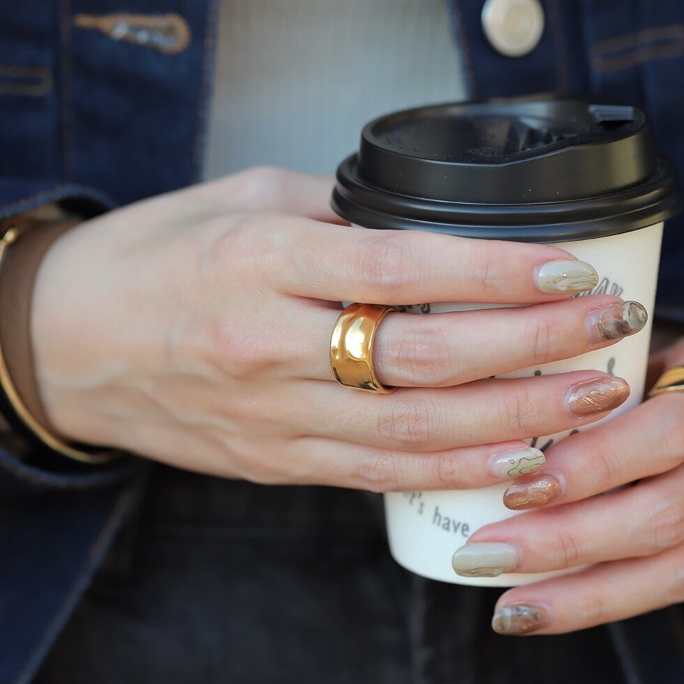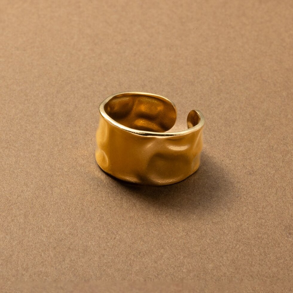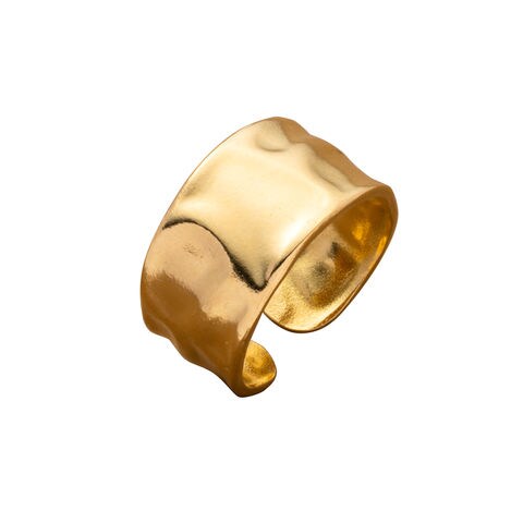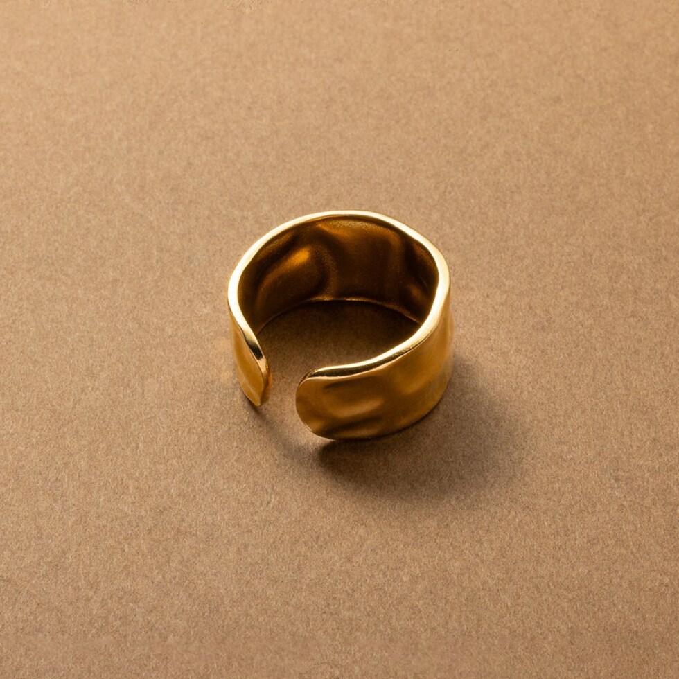 リング 指輪 ステンレス 金属アレルギー サージカルステンレス レディース つけっぱなし ワイド 幅広 たたき加工 オープンリング リングカフ cream dot ゆうパケット [ゴールド_15号]のレビュー