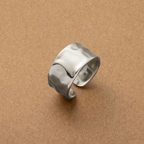 リング 指輪 ステンレス 金属アレルギー サージカルステンレス レディース つけっぱなし ワイド 幅広 たたき加工 オープンリング リングカフ cream dot ゆうパケット [ゴールド_15号]